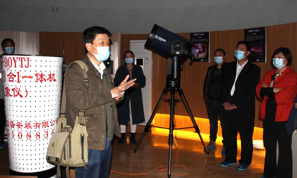 活动伊始,宋城小学教师团队对我院师生的到来表示热烈欢迎。在青少年校外活动中心天文台,宋城小学教师与许立民、韩艳进行了亲切交流。他们向我院师生介绍了宋城小学在天文科普方面的设施建设与具体应用情况,以及“双减”背景下学校如何培养和发展学生的兴趣爱好。