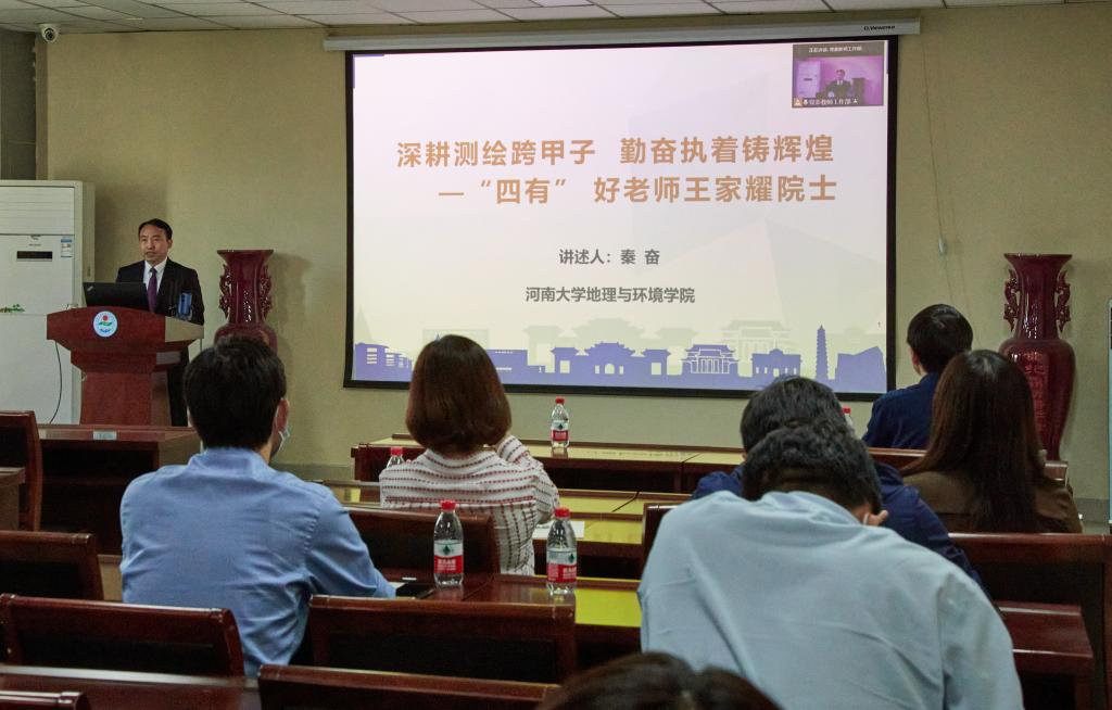 启动仪式结束后,地理与环境学院博士生导师秦奋教授围绕“深耕测绘跨甲子 勤奋执着铸辉煌”主题,从“跨甲子的勤奋拼搏”、“跨世纪的辉煌成就”、“跨时代的科技楷模”三个方面生动讲述了王家耀院士深耕教学与科研60载,立德修身,潜心治学,开拓创新,为国家安全和经济社会发展报效奉献的感人事迹与家国情怀。