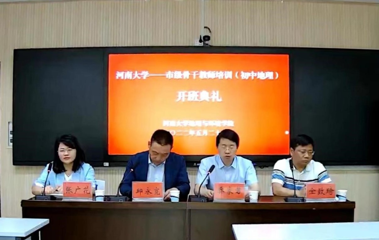 为促进河南省初中地理教师教学与教研能力提升,2022年5月21日“国培计划(2021)”初中地理市级骨干教师培训开班典礼在我院国家级实验教学示范中心101教室准时召开。出席典礼的学院领导老师有执行院长乔家君教授、地理学科教学硕士生导师张广花副教授、继续教育中心主任仝致琦博士,开班典礼由副院长、市级骨干教师能力提升项目组委会主任邱永宽主持,全体培训班学员在线参加了本次典礼。