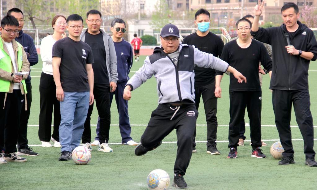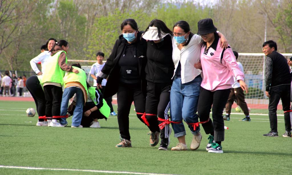 本次运动会共六个项目,分别是盲人摸象、带球绕杆、托球跑、四人五足、实心球掷准和点球大战。各项比赛按名次先后记分,根据比赛的总得分进行排名。赛场上,教师们尽情挥洒汗水,场外观众也时刻关注比赛动向,为参赛教师加油鼓气、呐喊助威,场面欢快热闹,留下阵阵欢声笑语。盲人摸象环节展现了教师对距离预估的准确判断力;带球绕杆项目展现教师们非凡的控球能力;拖球跑环节中更是欢快无比、不亦乐乎,教师们在保证乒乓球不掉落的情况下,火速向前,健步如飞,将球移交给接力队员,尽力缩短小组用时;四人五足的游戏中,教师们以响亮整齐的口号,同心齐步,超越向前,展现出互帮互助,团结协作的精神;最后的点球大战,教师们用一次次精彩的射门为本次趣味运动会画上完美的句号。