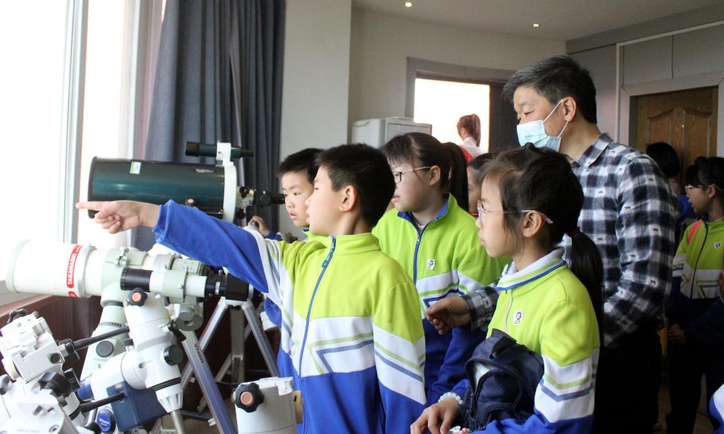 天文台上,许立民老师向学生介绍天文望远镜的相关知识、讲解天文拍摄的图片,并对学生提出的问题进行解答。虚拟地理科学实验室内,李斌老师向学生们展示以“豫见黄河,理蕴华夏”为主题的宣传片,随后让学生们体验动感座椅,给学生带来极大的视觉震撼。东英自然博物馆内,陈英勇老师带领学生们参观岩石并为他们讲解这些岩石的形成原因、命名缘由等知识,引发学生的探究兴趣。翟石艳老师通过“虚拟地球”向他们展示了开封的范围、河大附小与河大之间的距离,带领学生们品味科技的神奇。