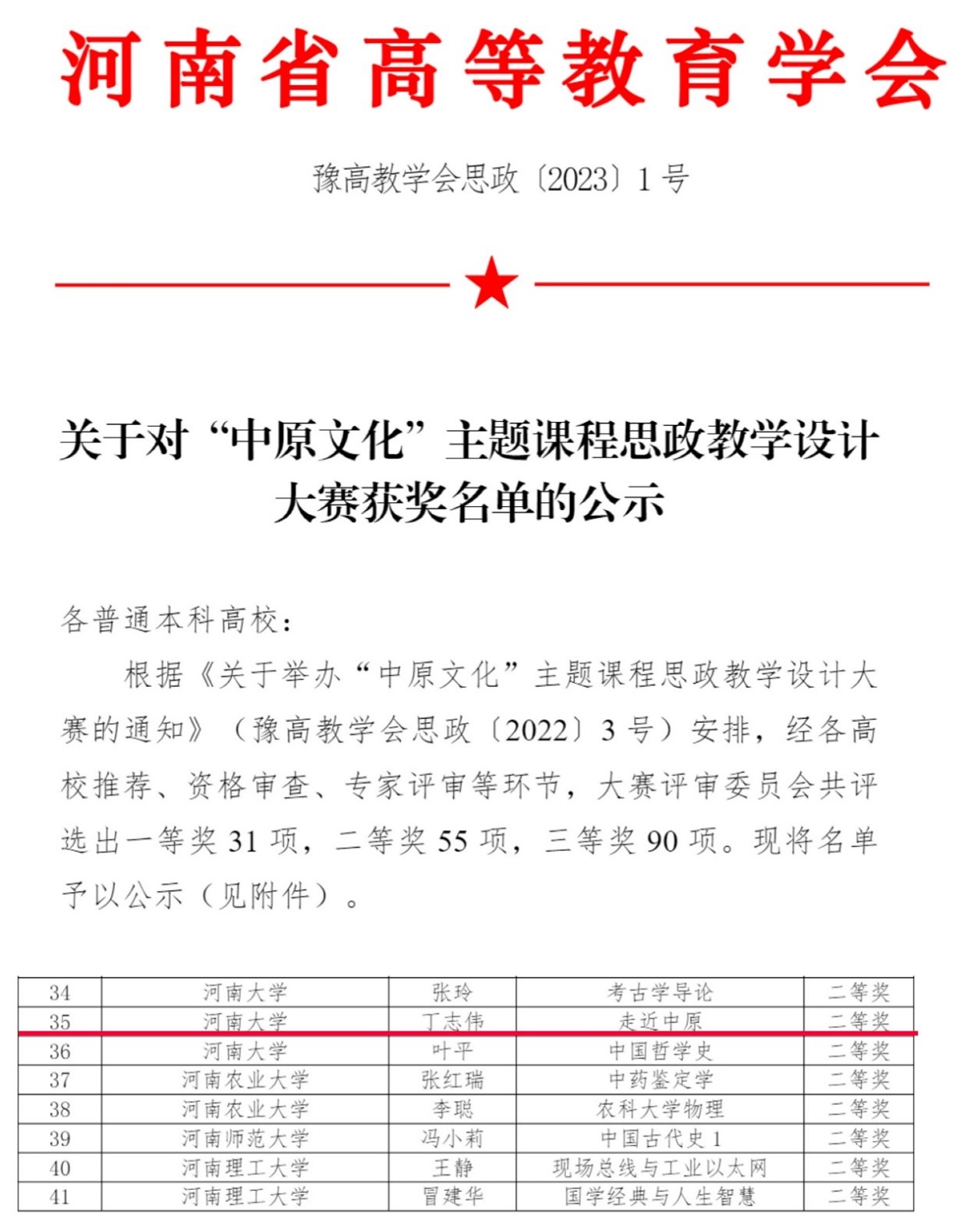 近日,河南省高等教育学会公布了“中原文化”主题课程思政教学设计大赛获奖名单。我院教授丁志伟申报的课程思政教学设计案例《走近中原》荣获二等奖。据悉,本次大赛以习近平新时代中国特色社会主义思想为指导,以“中原文化”为主题,旨在打造具有河南地域文化特色的课程思政课堂,充分发挥课堂教学育人主渠道、主阵地的育人作用。