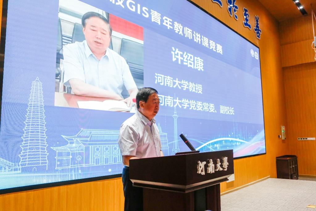 党委常委、副校长许绍康,中国工程院院士、河南省时空大数据产业技术研究院院长王家耀,欧亚科学院院士、中国地理信息产业协会教育工作委员会主任、武汉大学教授刘耀林,教育部高等学校地理科学类专业教学指导委员会副主任、南京师范大学教授汤国安等200余位嘉宾,竞赛评委,参赛教师及研究生参加了开幕式。许绍康首先发表了热情洋溢的欢迎词,随后李维森会长、王家耀院士和刘耀林教授等分别在开幕式致辞。开幕式由河南省时空大数据产业技术研究院执行院长秦奋教授主持。