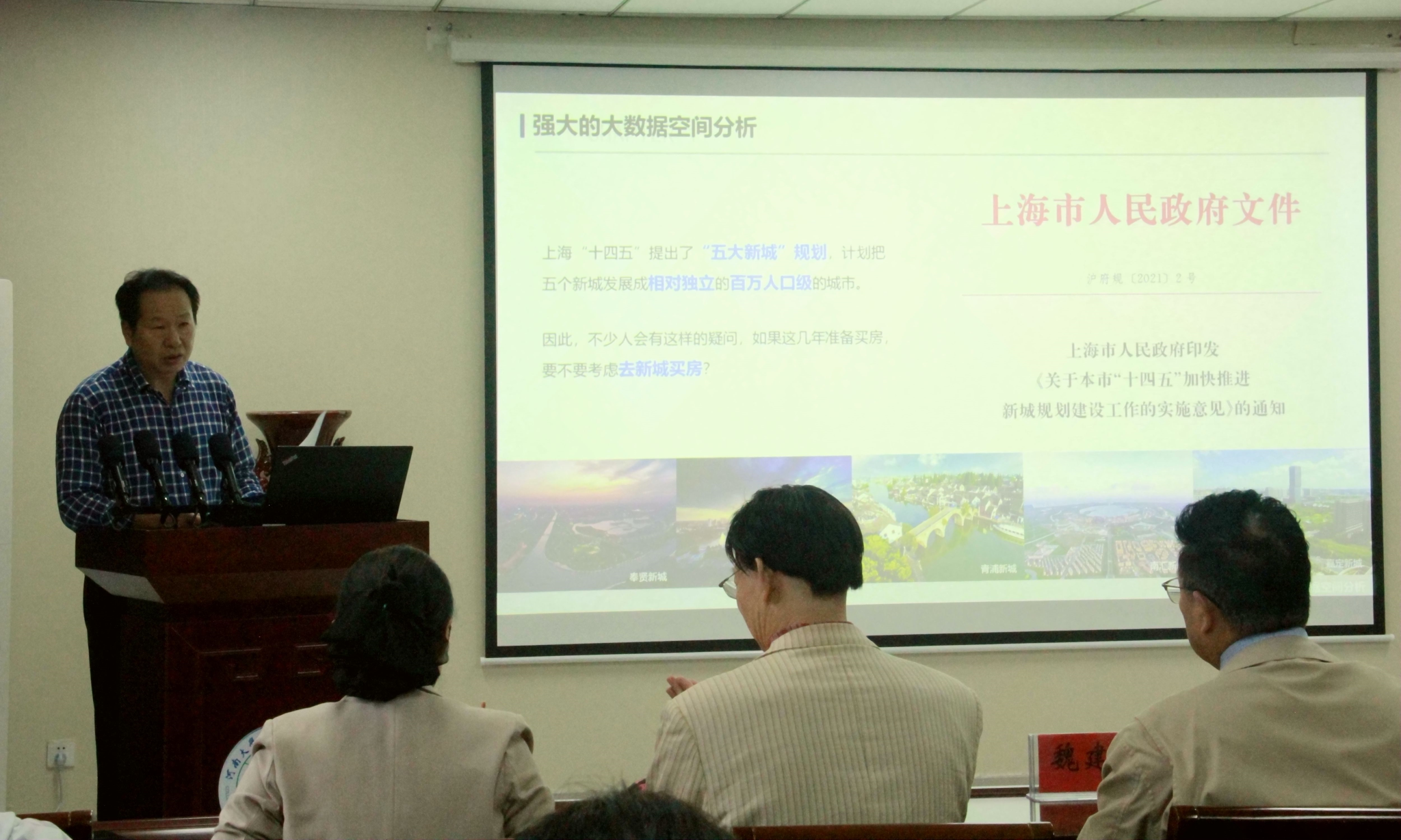 地理与环境学院执行院长赵威作学术报告,论坛由地理与环境学院党委书记乔家君主持。