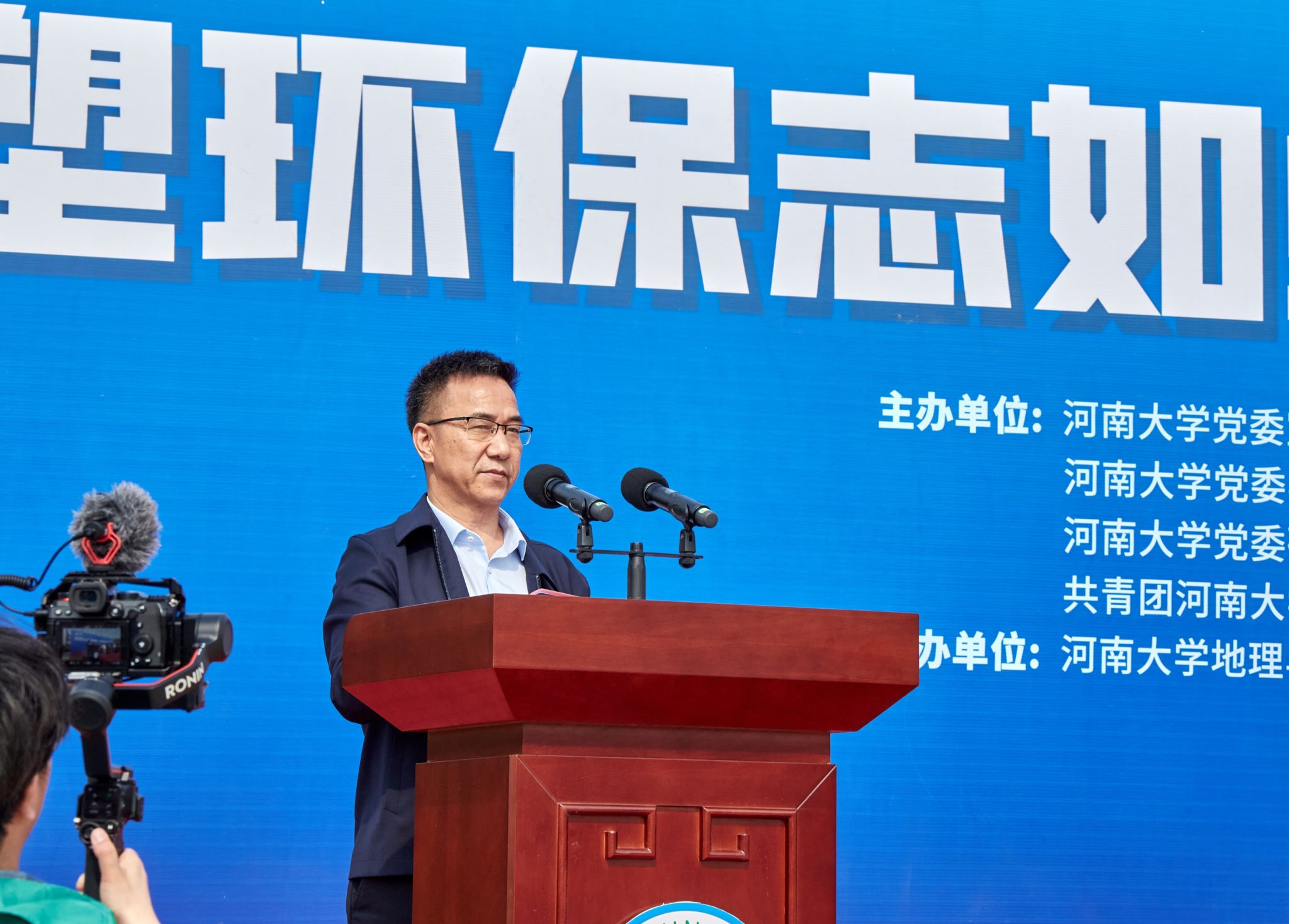 傅声雷致开幕词,他表示生态文明建设是中国特色社会主义事业的重要内容,关系人民福祉、关乎民族未来。各单位应切实做好各项工作,以培育和弘扬社会主义核心价值观为宗旨,以“双一流”建设为支撑,认真落实“立德树人”根本任务,培养青年一代的优良品质。青年大学生应积极投身社会环保事业,坚持贯彻环保理念,坚决落实国家政策,坚守生态文明阵地,践行生态文明建设,推动人类可持续发展事业,促进人与自然和谐共生、良性循环、全面发展、持续繁荣,汇聚群众环保力量努力走向社会主义生态文明新时代。