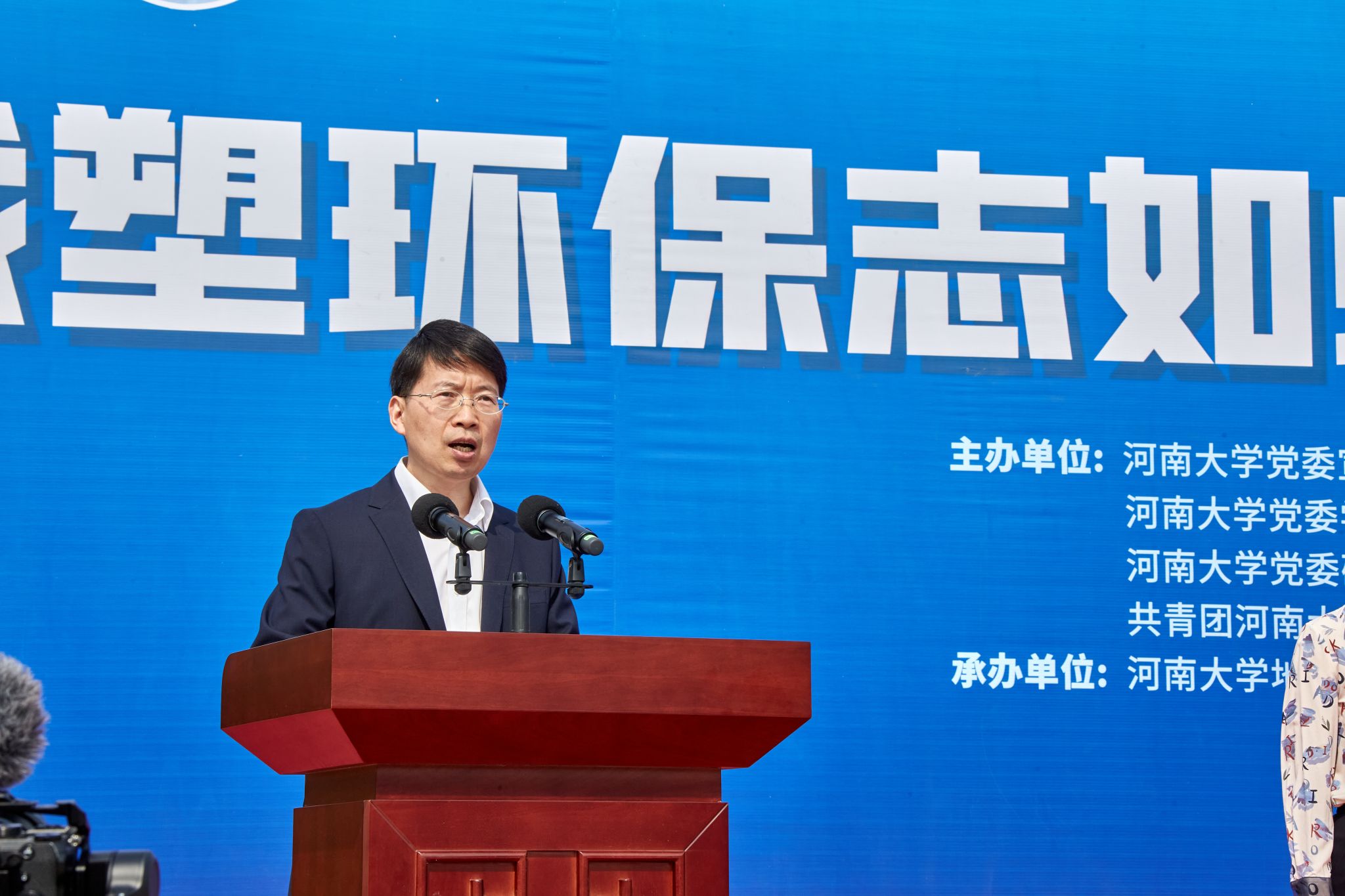 合作,通过主题活动加深大学生对塑料污染问题的认识,提升大家参与塑料减排相关活动的积极性,为共同为建设美丽中国、美丽河南而努力!乔家君在讲话中指出,学院将充分发挥学科优势,深刻挖掘生态文明内涵,将环境保护作为自己的责任和担当,为地球重现绿意盈然带头冲锋,共筑环保绿色征程。