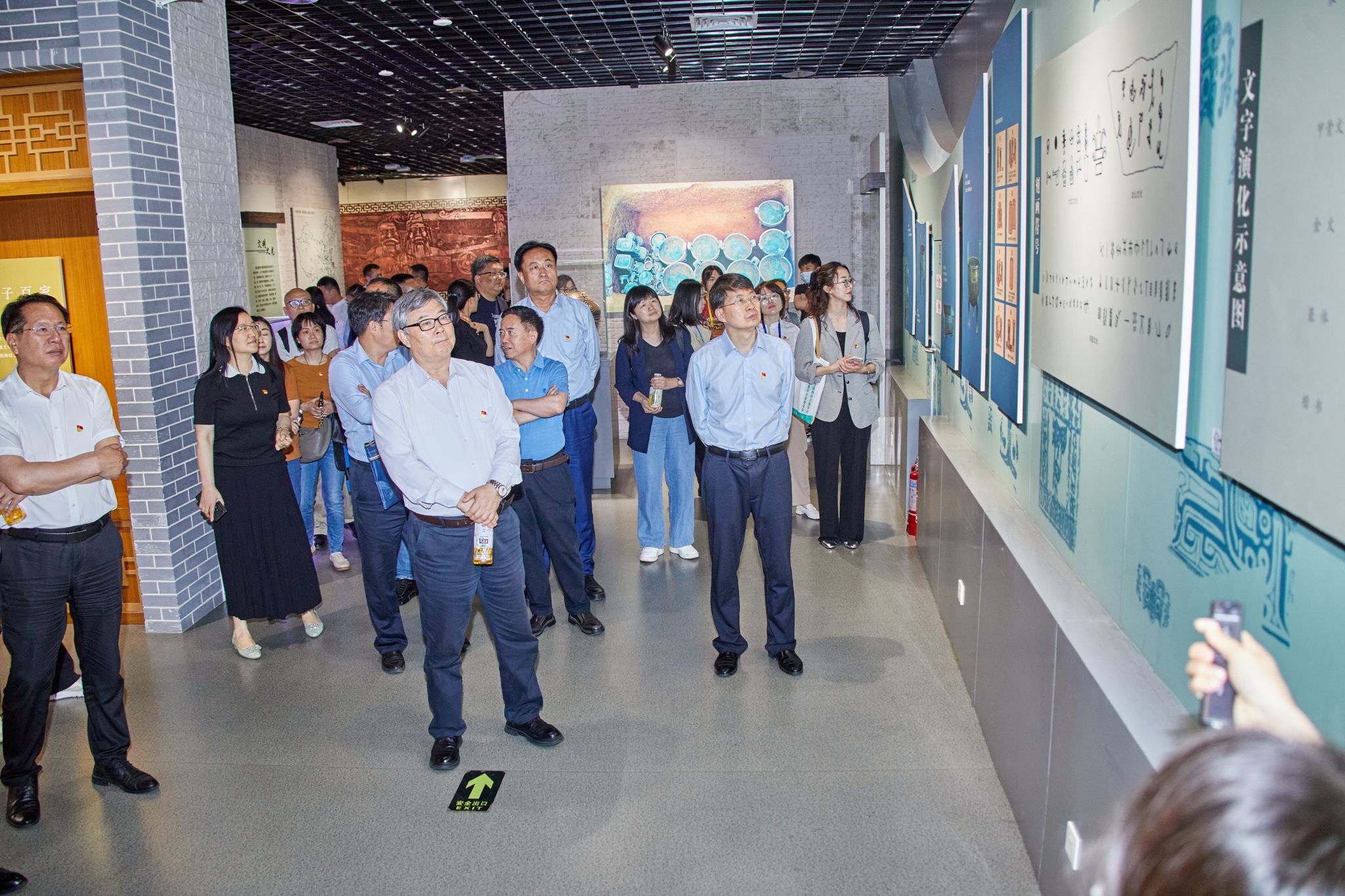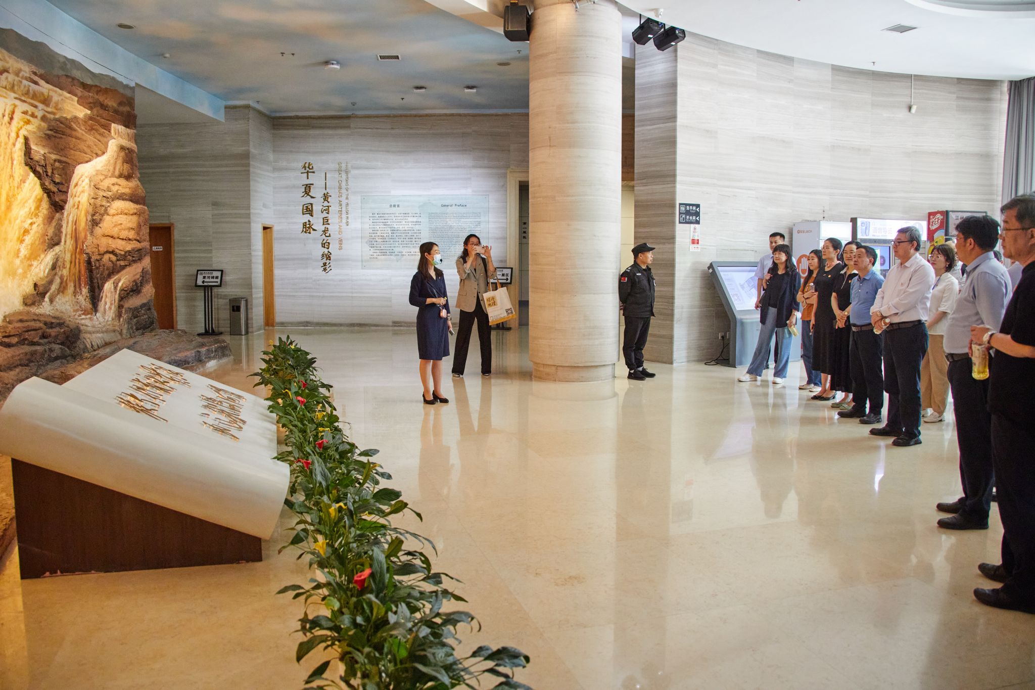 在解说员的带领下,党员同志参观了黄河博物馆主题展“华夏国脉——黄河巨龙的缩影”。大家通过观看照片、历史文献、文物标本、录像视频、三维动画等方式,依次对流域地理、民族摇篮、千秋治河、治河新篇、和谐之路等展厅进行参观,深入了解了黄河流域的地理地貌、自然概况、历史文化、文明发展、水患治理、生态保护的历史变迁等,深切感知了黄河文化的源远流长、灿烂丰富。黄河文化是中华文明的重要组成部分,参观黄河博物馆就是对这部千秋治黄史的深入解读和感悟。“一部治黄史,半部中国史。”这部治黄史,是由洪水肆虐到岁岁安澜的历史,是由百废待兴到万象更新的历史,是由过度开发到生态优先的历史,中华民族在同黄河水患的斗争中展现的不屈不挠、顽强拼搏的奋斗精神令人动容。
