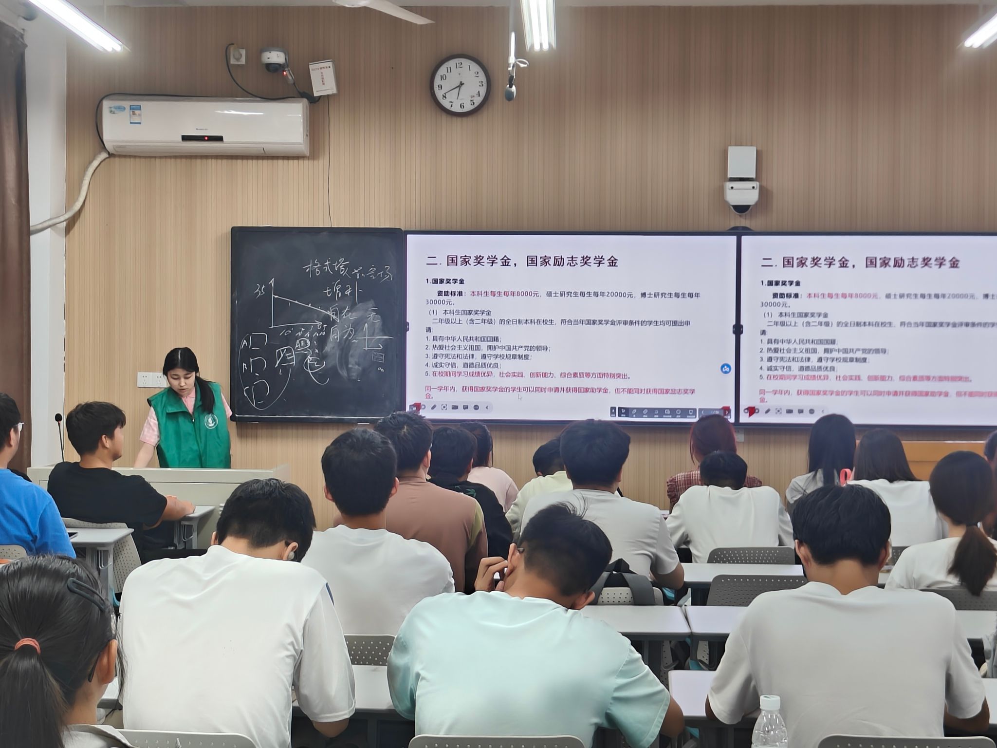 本次宣传活动主要从国家资助政策简介、如何有序开展资助工作两方面展开。首先,学生宣讲团成员向我院学生简单介绍了目前我国已建立的学生资助政策体系,并对国家奖学金、国家励志奖学金、国家助学金、国家助学贷款等各项资助政策的资助标准和申请条件进行了详细阐述,同时补充了勤工俭学、入伍服兵役等高校资助政策。最后,学生宣讲团成员向我院学生展示了我校开展资助工作的基本流程,并提醒学生面对网络上的资助信息要仔细辨别,实时关注学校和学院的官方通知,以防被不法分子、校外中介机构等诈骗钱财,损害自身权益。