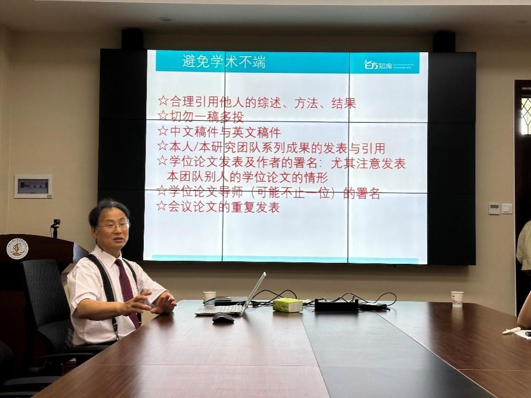 此次交流主要围绕写作规范及常见问题、投稿策略展开。在第一场报告中,张利田研究员首先以“创新性是学术论文的核心”引出学术论文的定义,随后强调了学术论文写作的重要性,并分析了学术论文可发表性的影响因素。张老师通过举例说明学术论文写作的基本要求,并强调学术论文格式、论文的整体结构及各部分写作需要严格符合国家相关行业标准。最后,张老师提醒同学们在写学术论文之前需要思考学术定位、逻辑规划、写作技术3个问题,并通过生动的案例对数据统计分析、格式要求中遇到的常见问题进行解析。