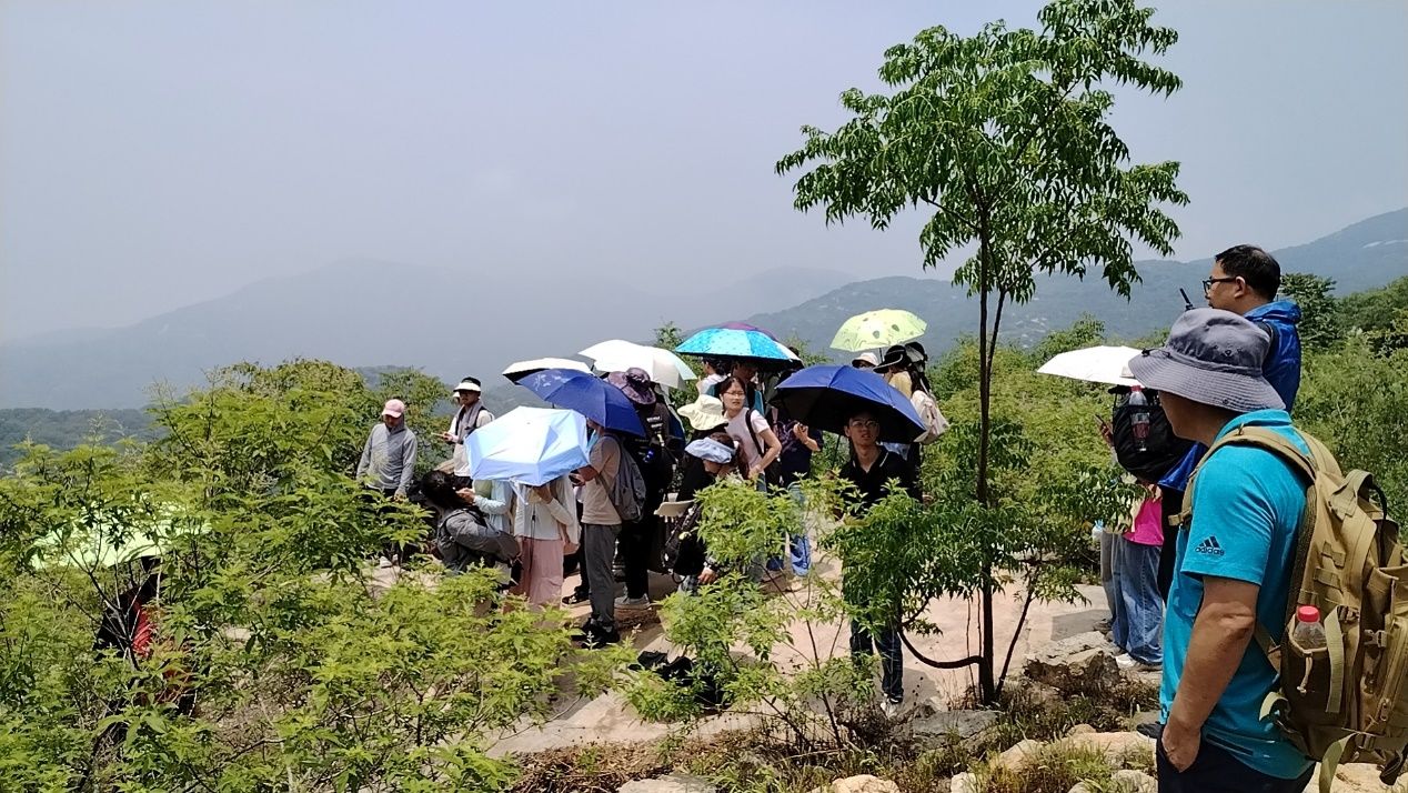 7月1日上午,学生们在带队老师的带领和讲解下参观了羊山岛的地貌形态,对该地区的节理和断层构造现象、以及二者对外营力地貌形成的影响有了清晰的认识,激发了学生对地质地貌考察工作的热爱与兴趣。下午,师生们前往海上云台山山顶,通过样方法和小组合作的形式对该地区的植物群落进行实地调查,不仅提高了他们的动手实践能力,也进一步培养了他们的团队协作精神。