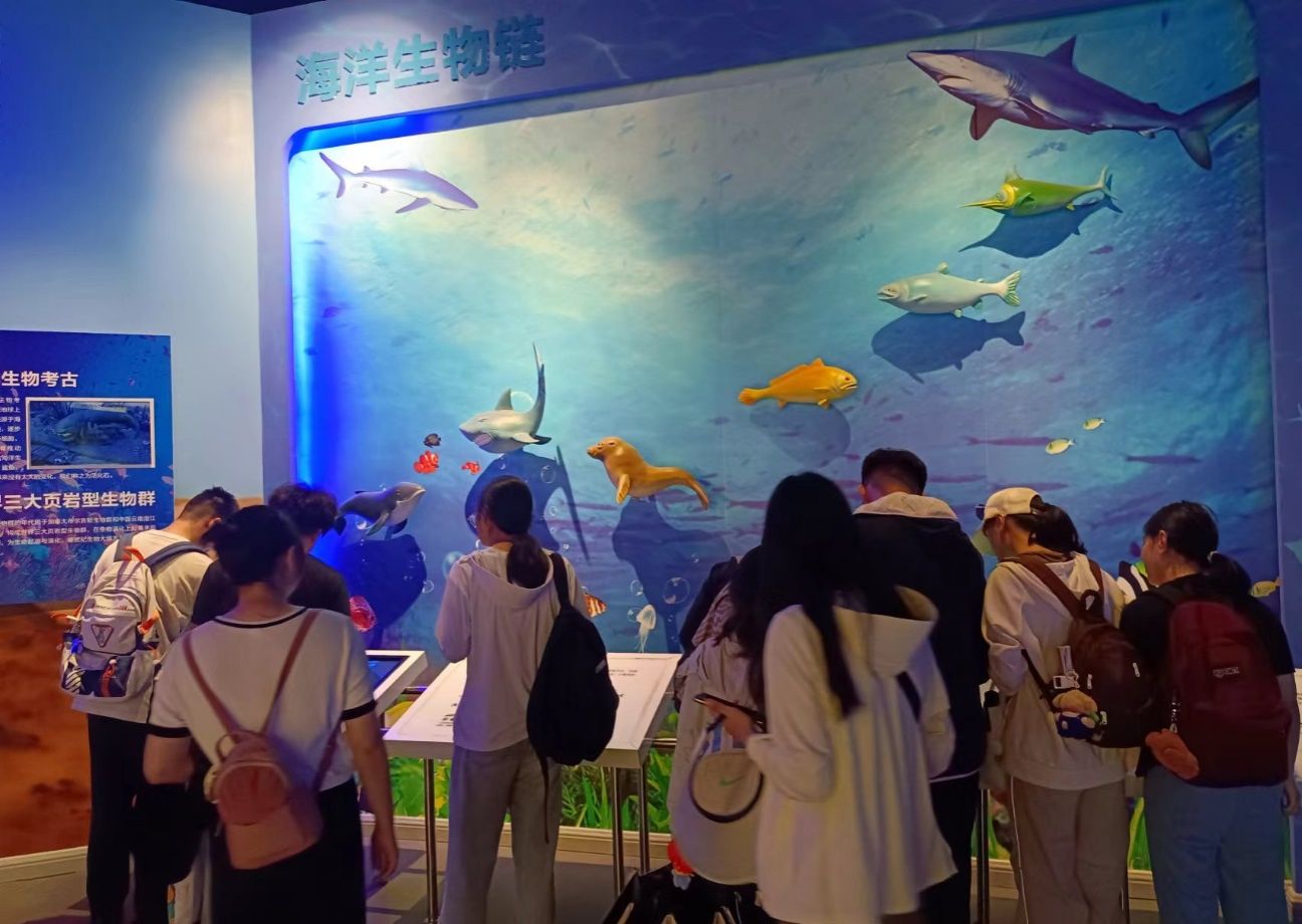 6月30日上午,实习队前往日照海洋科普馆进行参观学习。日照市海洋与渔业研究院副院长王君霞以“新时代背景下海洋产业面临的机遇和挑战”为题进行了报告,她从海洋产业概述、面临的发展机遇、存在的问题与挑战、总结与展望四方面展开讲述。科普馆中也摆放着大量的地理模型和动物标本,这也吸引了众多学生驻足拍照学习。6月30日下午,实习队前往日照海洋公园和日照世界帆船锦标赛基地进行实习。日照海洋公园是将海洋馆与花鸟馆融合的新型海洋公园,将海洋、淡水动植物和陆生动植物综合展示的大型自然生态旅游综合体。在帆船基地,实习队员在教师的带领下,登上轮船近一步亲近了黄海。“纸上得来终觉浅,绝知此事要躬行”,学生通过亲身体验,用在实习过程中观察到的实际问题来验证课本上的理论知识,实现课本知识的升华。在晚饭后的讨论中,思维碰撞出火花,学生各抒己见,表达自己的在实习过程中遇到的问题、思考的解决措施。