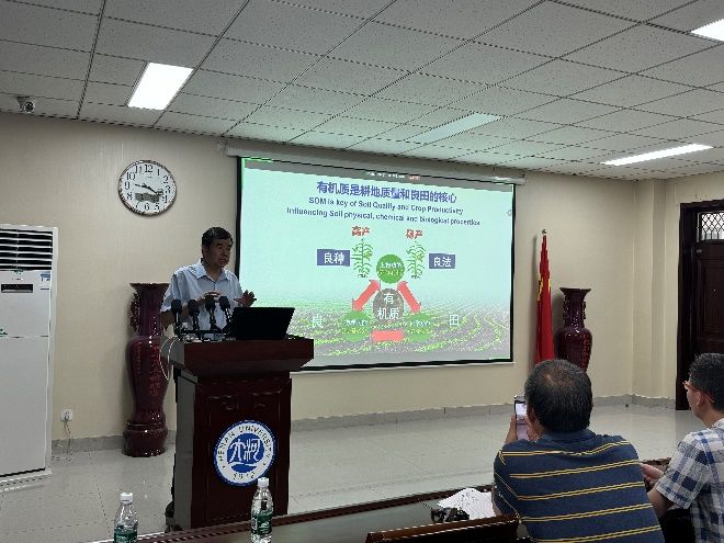 农业相关专业的师生作了题为“我国农田长期试验的生物多样性与土壤健康”的学术报告(图2)。