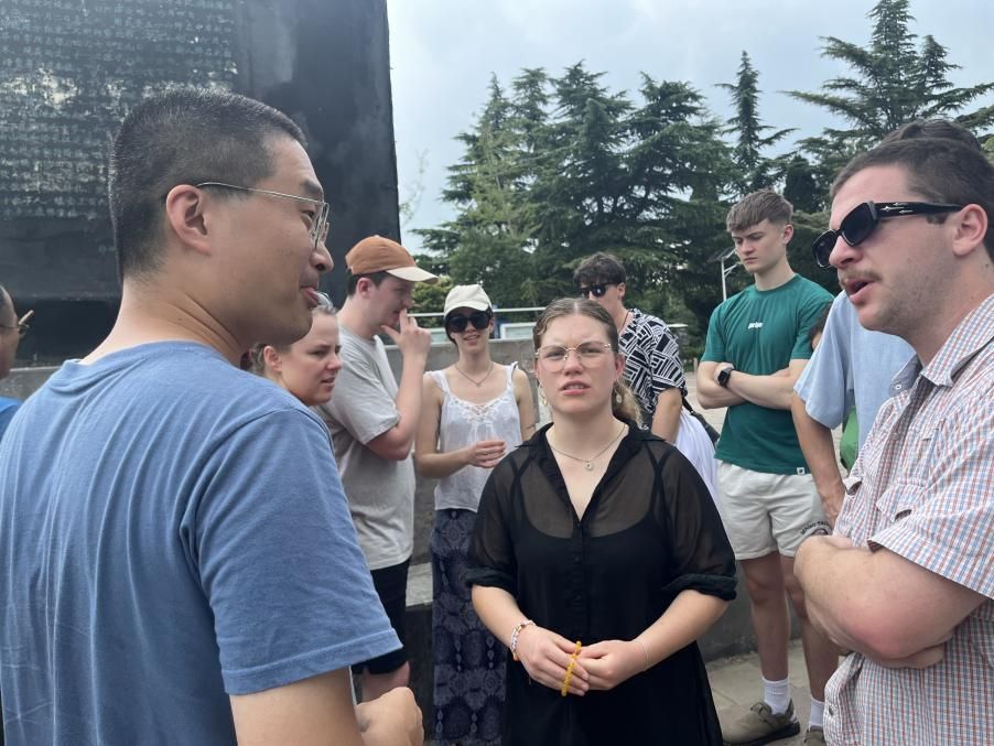 下午,学生们前往郑州市花园口参观。在抗日战争期间,形势急迫,为阻击日军,花园口黄河大堤被炸开,造成人为的黄河决堤改道。花园口决堤事件给黄河下游的豫(河南)、皖(安徽)和江苏等地的中国百姓带来了深重的灾难,淹没耕地1200余万亩,造成黄泛区,共计有千万人受灾,390万人流离失所。在蔡北溟老师的讲解下,学生们了解了这段沉痛的历史,感受到历史的沧桑,并对中国近代历史产生了浓厚的兴趣。