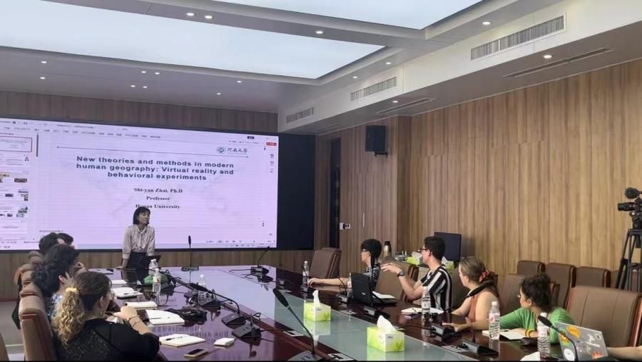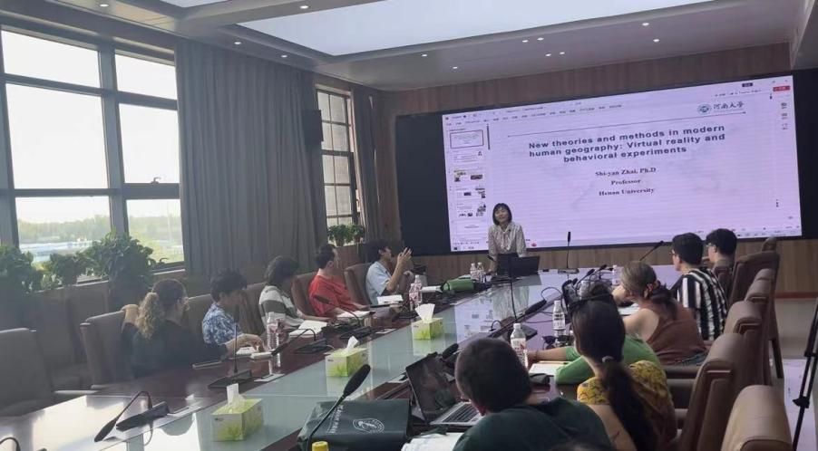 龙子湖校区河南省时空大数据产业技术研究院为同学们带来了一场关于现代人文地理学的精彩学术讲座。翟教授深入浅出地讲解了虚拟现实技术在地理研究中的实际应用,以及行为实验在解析人类空间行为方面的重要性。通过生动的案例分析和实际应用示例,同学们对虚拟现实和行为实验在地理学研究中的潜力有了深入了解。同学们对讲座内容表现出了极大的兴趣,纷纷积极提问。翟教授耐心解答了每一个问题,与同学们进行了深入交流,现场气氛十分热烈。