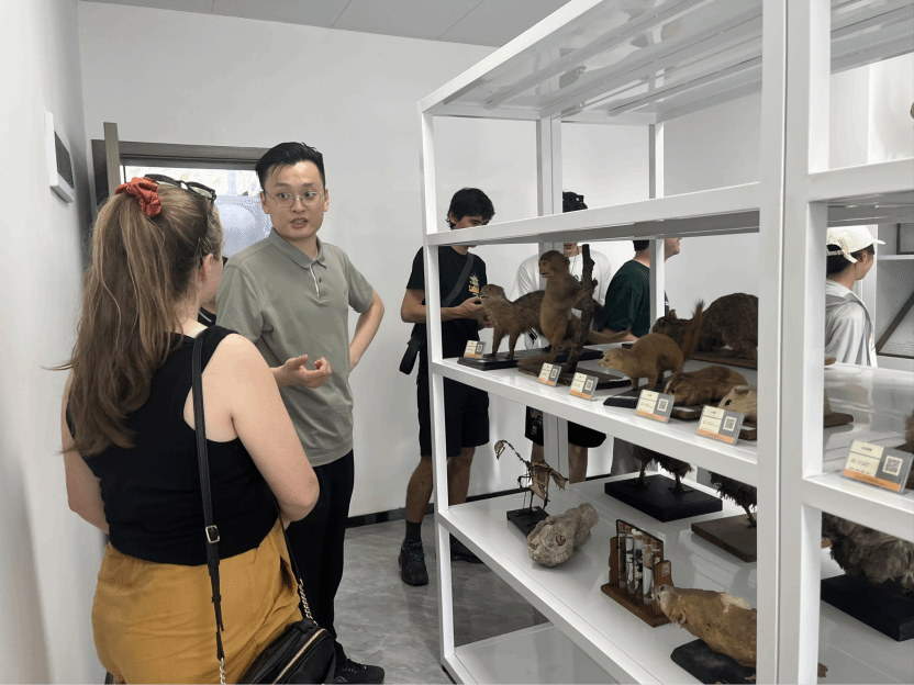 随后,学生们参观了研究站的标本室和实验室。在标本室,琳琅满目的动植物标本引起了同学们极大的兴趣,他们仔细观察各类标本并认真做记录,积极提出问题并对科学研究成果中的兴趣点展开了讨论。实验室参观环节,学生们近距离接触了前沿实验设备和常规观测设备,了解了各种先进的科研设备和技术,体会到科研工作的严谨细致和工作辛苦,表达出了对科研工作者的敬意。