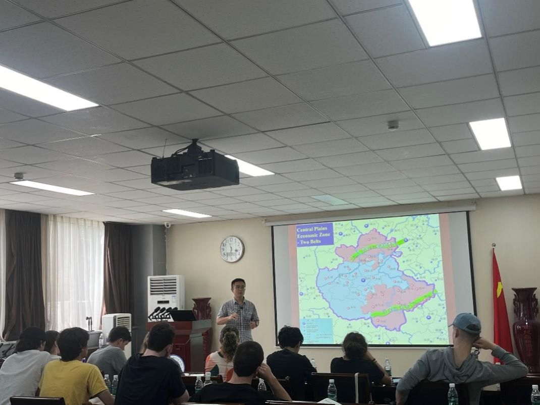 河南省首批通识示范课《走近中原》核心成员、河南省首批课程思政样板课《城市地理学》核心成员、学院区域与城市科学系韩冬副教授进行了题为“中原地区的范围和振兴发展”的讲座。韩冬以生动有趣的语言向学生们详细介绍了中原地区的地理范围、历史背景及其在中国发展中的重要地位,通过实例分析,展示了中原地区在现代化进程中的振兴发展策略,并提出了促进区域经济发展的具体路径。期间,同学们踊跃提问,在与韩东副教授的亲切沟通中受益匪浅。