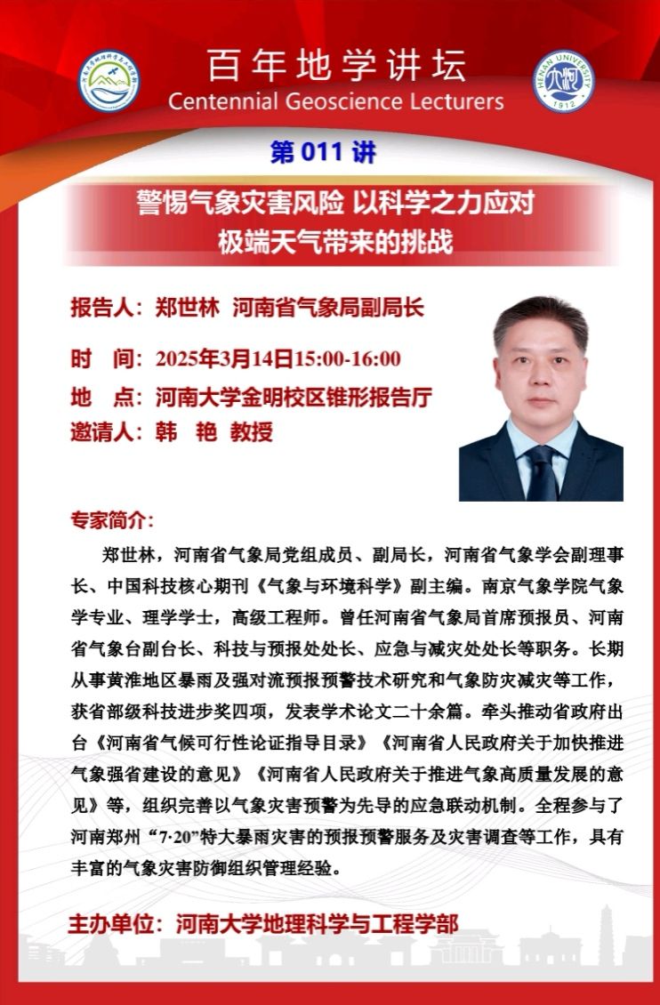 百年地学讲坛|警惕气象灾害风险 以科学之力应对极端天气带来的挑战