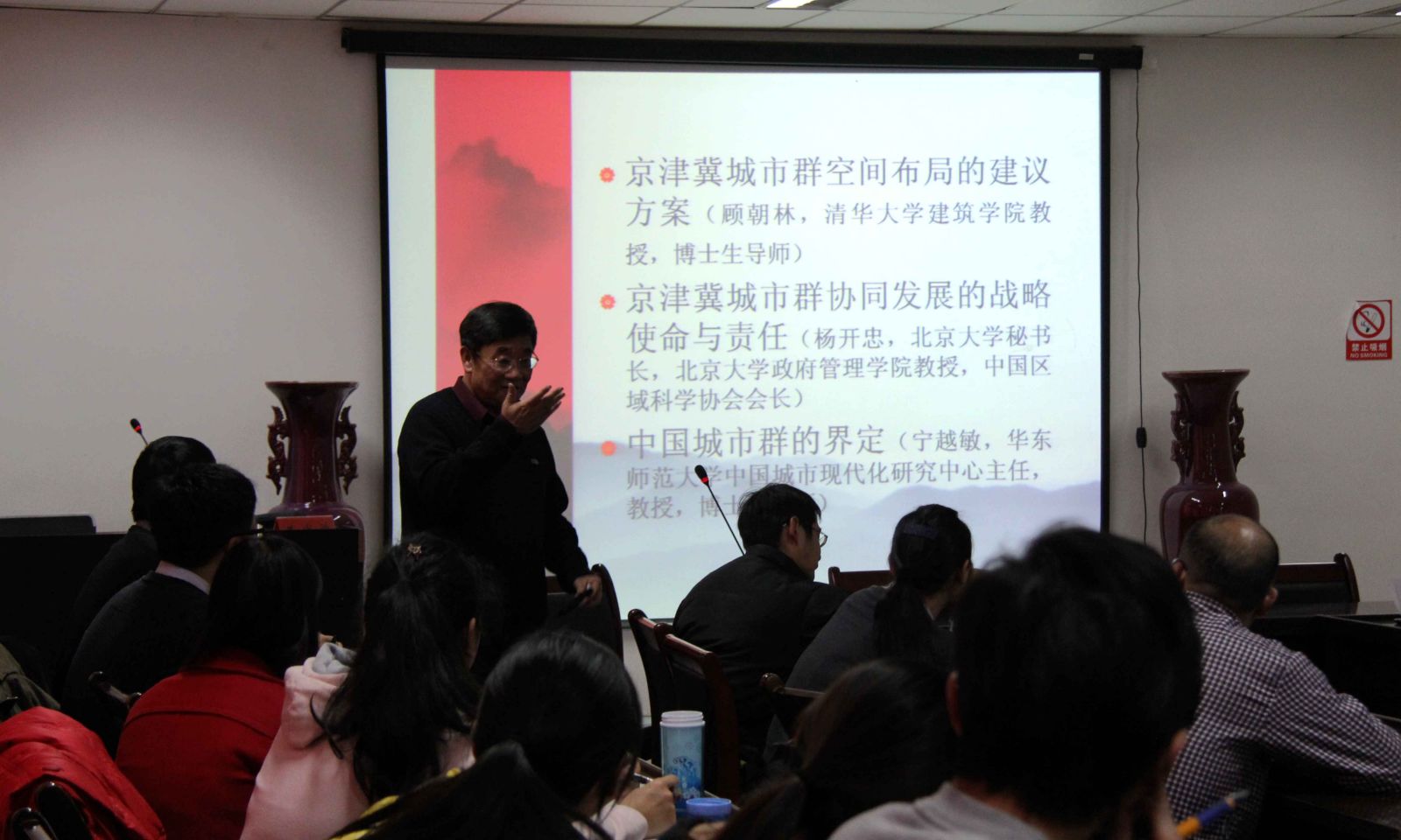 12月24日,我校原常务副校长、环境与规划学院人文地理学博士生导师王发曾教授在我院二楼学术报告厅做以“中国城市群发展高层论坛纪实”和“城市群整合的归宿:大都市地区”为题的学术报告。学院八十余名师生参加了报告会。报告会由我院区域与城市科学系主任徐晓霞主持。