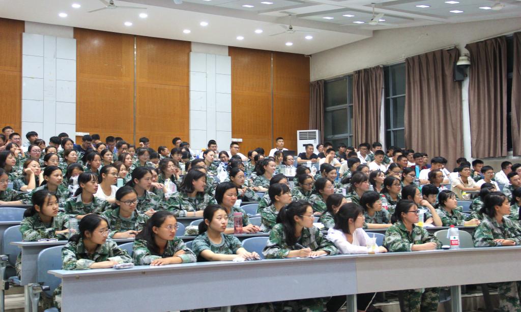 兼职教授李俊明在金明综合楼1201教室作题为“礼仪是成功之本”的报告。本次报告由环境与规划学院副院长赵威主持,2019级新生参加此次报告会。