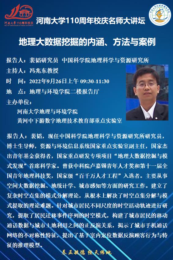 小说狂人 110周年校庆名师大讲坛:地理大数据挖掘的内涵、方法与案例
