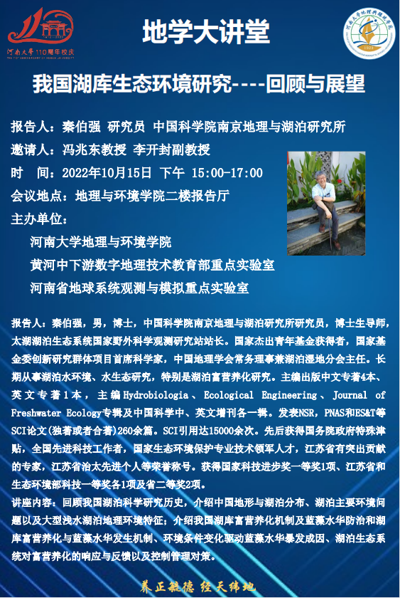 地学大讲堂:我国湖库生态环境研究——回顾与展望