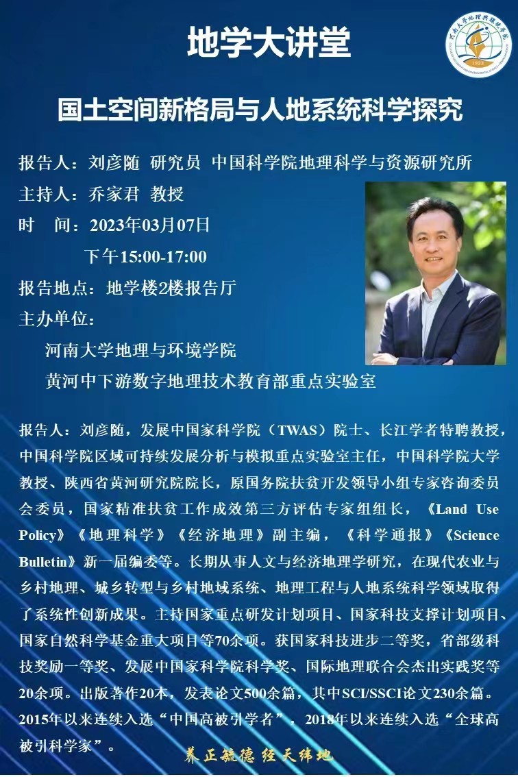 地学大讲堂:国土空间新格局与人地系统科学探究