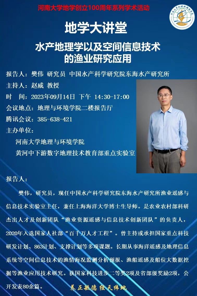 地学大讲堂 | 水产地理学以及空间信息技术的渔业研究应用