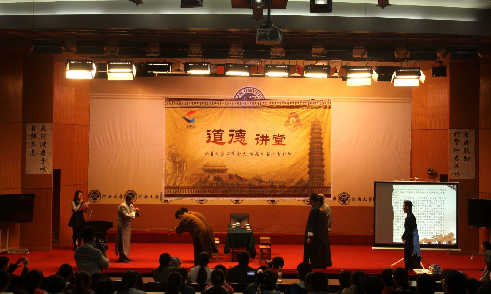 此次道德讲堂以“海纳百川、立德树人”为主题,弘扬中华文化,传播优良道德,凸显当代地理人海纳百川的博大情怀、小说狂人