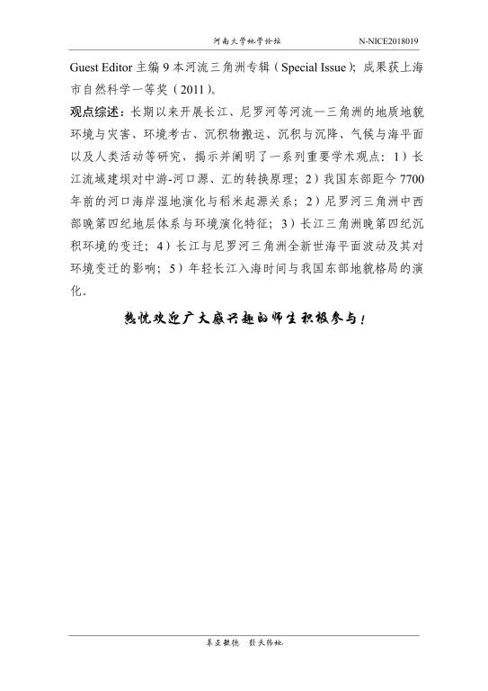 【地学论坛】陈中原:长江中下游旱期农业文明与地貌环境演变(时间:9.29,15:00-16:30)