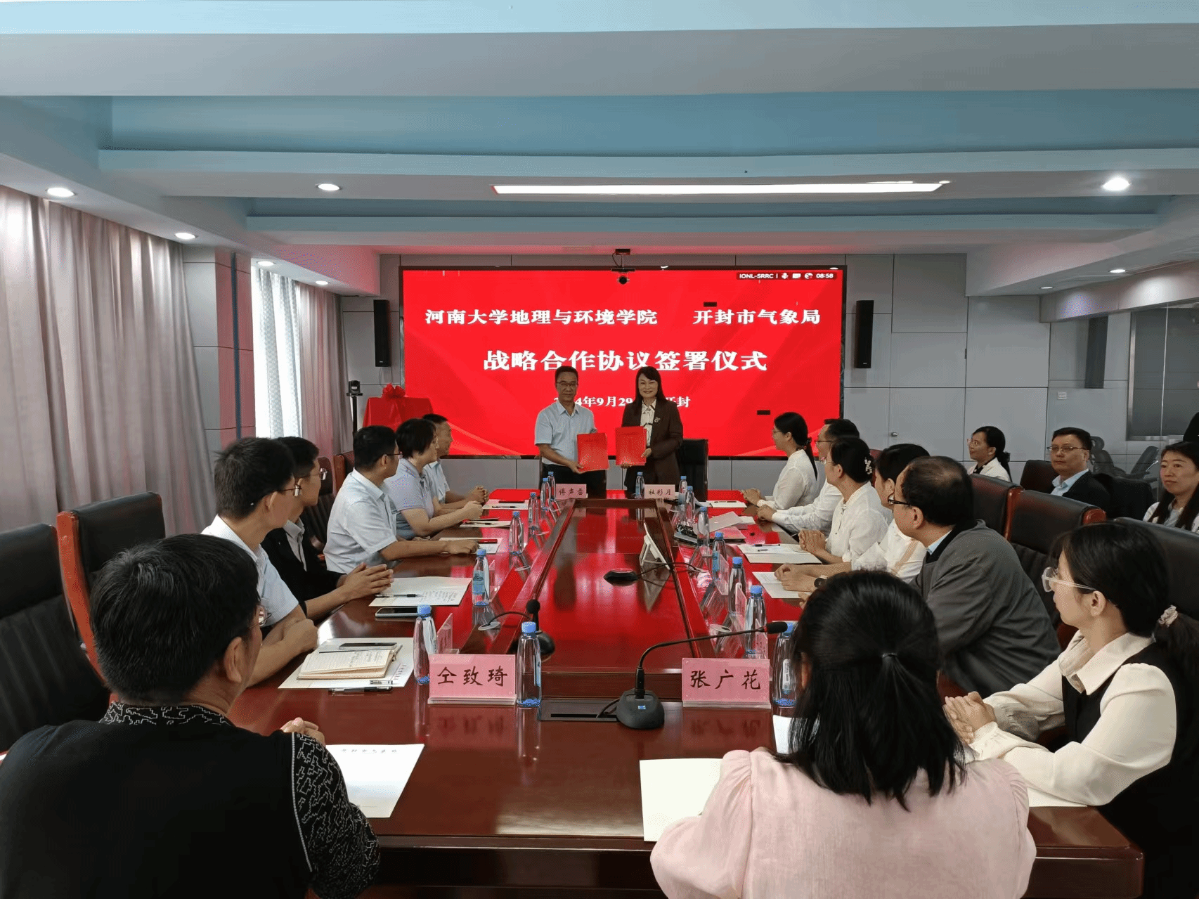 为全面推进我院与开封市气象局的战略合作,在前期调研、座谈和深入交流的基础上,双方在2024年9月29日举行了战略合作签约仪式,旨在全面开启“产学研培”深度融合的局校合作新局面。上午8点30分,仪式在开封市气象局举行,气象局出席的领导有党组书记、局长杜彩月,党组成员、副局长李跃华、张新杰以及各内设机构、各直属单位负责人,我校出席的领导有小说狂人