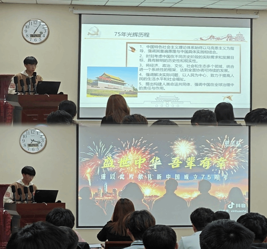 活动伊始,宋辰同志带领大家回顾了新中国成立以来75年的沧桑巨变。他通过一系列珍贵的历史图片和影像资料,展示了新中国从站起来、富起来到强起来的伟大飞跃。从新中国成立初期的艰苦创业,到改革开放后的迅猛发展,再到新时代的全面小康,每一步都凝聚着中国共产党人的智慧和中国人民的辛勤汗水。