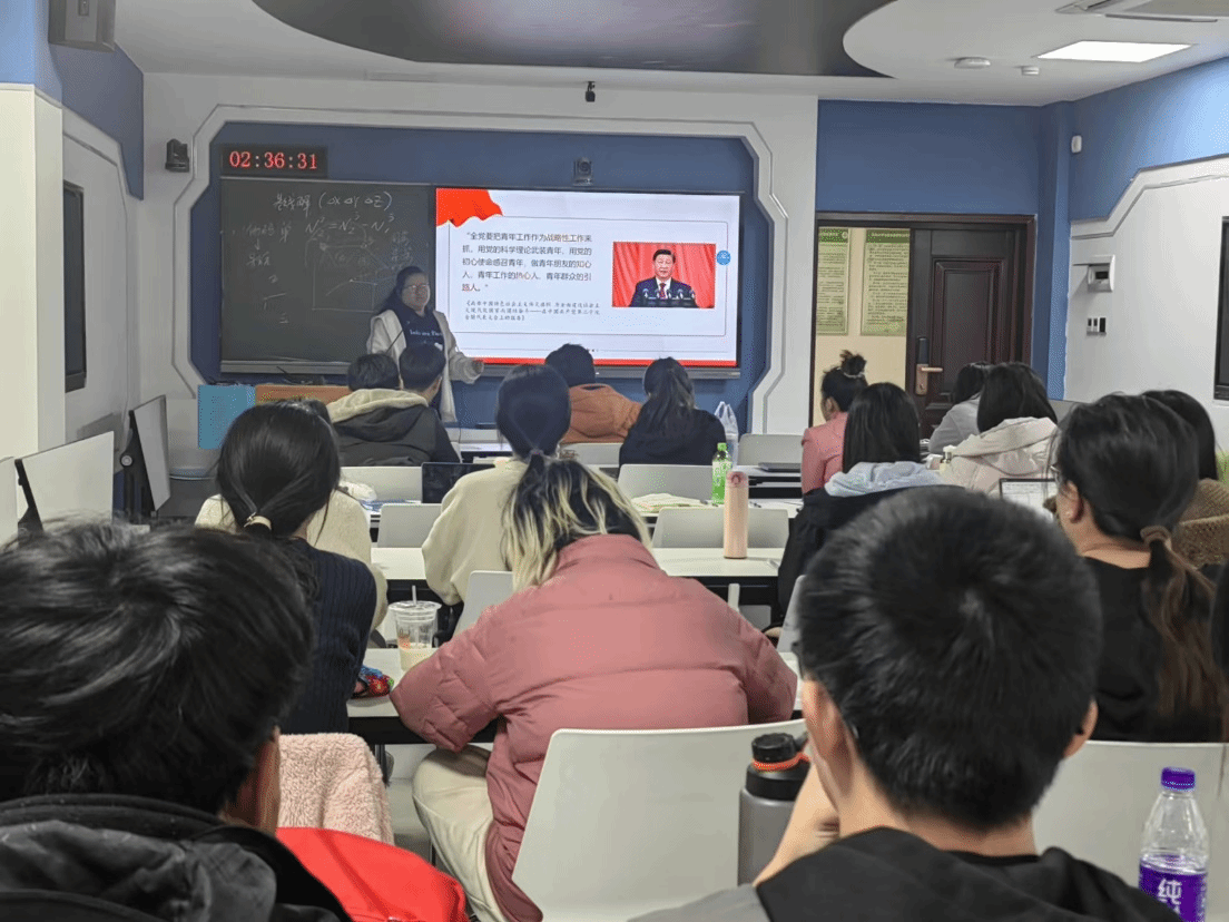 本次主题党日活动以集中学习、观看影片、交流探讨等形式进行。首先,周菁菁详细解读了《习近平与大学生朋友们》第二卷中记录的习近平总书记与大学生们交往的部分故事,包括邀请正定籍返乡大学生座谈、赴天津大学学生宿舍交流等内容,展现了习近平总书记对青年成长的深切关怀。周菁菁在会上强调了习近平总书记提出的“自强不息、厚德载物、携笔从戎、立志报国”的精神,勉励大家在学习和生活中践行习近平总书记的教导,将个人命运与国家发展紧密相连。接下来,全体团员共同观看了相关视频资料,并围绕“要将自己的命运同国家民族的命运紧紧联系在一起”的主题展开了热烈讨论。团员们踊跃发言,表达了自己在未来的学习工作中克服困难、不断进取的决心。