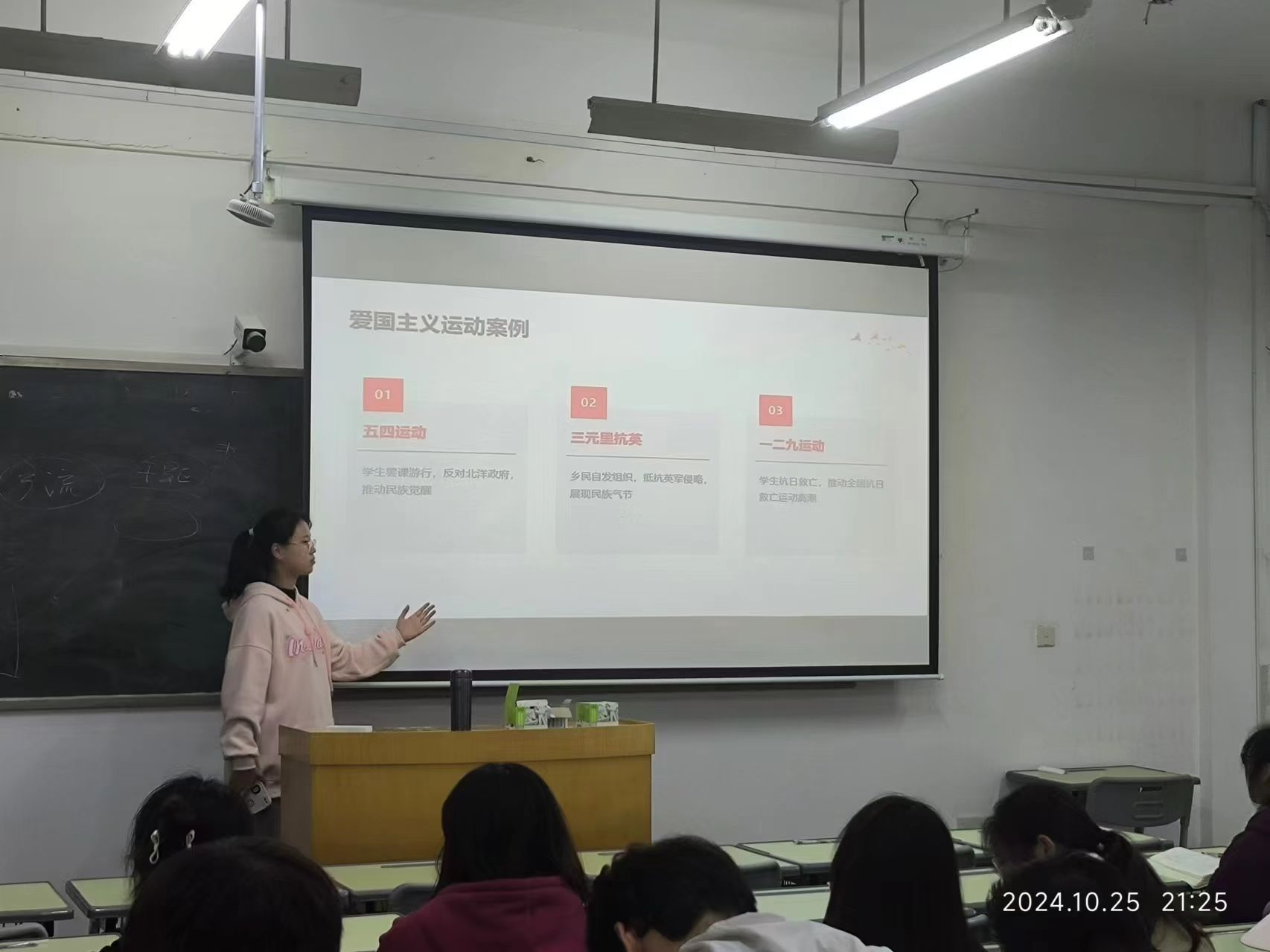 为深入传承与颂扬中华民族源远流长的爱国主义精神,精心雕琢新时代的爱国青年群像,铸牢中华民族共同体意识的根基,10月22日至27日,我院2023级本科生团支部举办了以“爱国主义精神”为主题的团日活动。活动由各团支部书记主持开展,支部团员和青年积极参与。