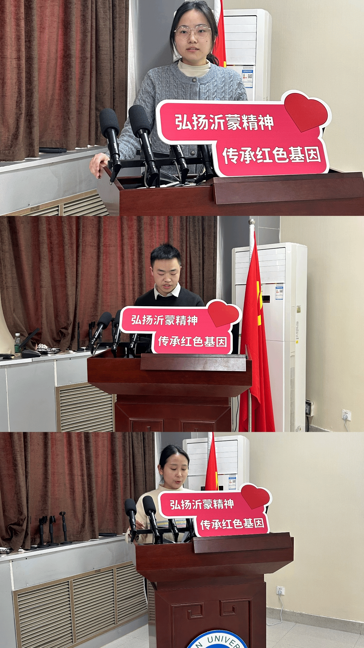 会议第一部分,沂蒙精神宣讲团成员为与会人员讲述沂蒙红嫂精神的感人事迹。从用乳汁救伤员的明德英,到组织乡亲们烙煎饼、做军鞋的“沂蒙六姐妹”,再到为保护党的机密而英勇牺牲的吕宝兰……一个个生动的故事,让大家深刻感受到沂蒙红嫂“最后一口粮当军粮,最后一块布做军装,最后一个儿子送战场”的无私奉献精神。