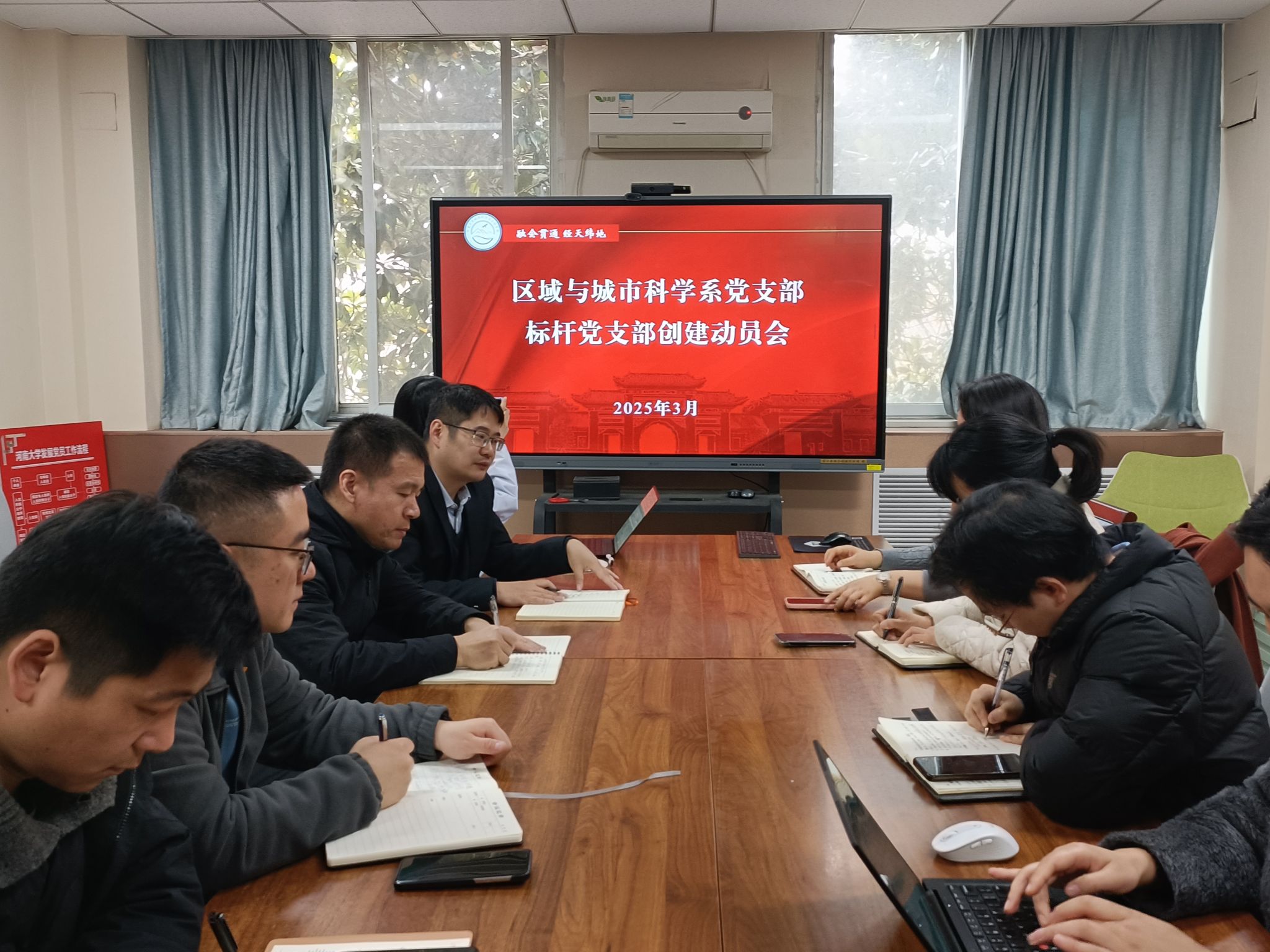 区域与城市科学系党支部在地学楼二楼党支部书记活动室举行了青年党员谈心活动并召开了标杆党支部创建动员会。学院党委副书记徐小军,区域与城市科学系主任、党支部委员翟彬,区域与城市科学系副主任、党支部委员张丽君及韩冬、陈妮、冉钊、任卫珍等青年党员代表参会。会议由学院党委青年委员、副院长、区域与城市科学系党支部书记丁志伟主持。