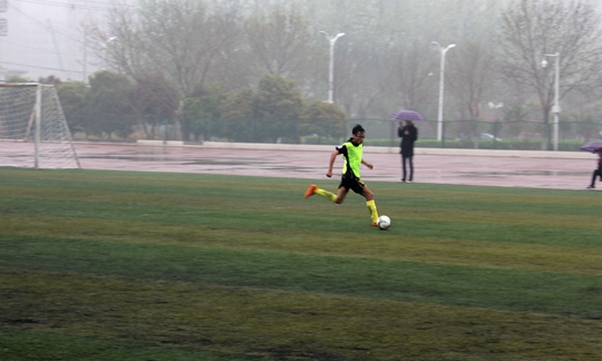 随着裁判的一声哨响,比赛正式开始。赛前突如其来的小雨,增添了几分寒意,但我院球员们没有丝毫懈怠。他们在上半场比赛中抓住角球这一机会,我院球员杜卿开出质量极高的角球,王琛在前点迎球头球后蹭,足球砸地后弹进球门,我院率先进球得分。在我院领先一分后,对方加大攻势,我方球员多次出现失误,比分险被扳平。下半场第70分钟,我方再创破门良机,在禁区弧顶获得近距离任意球。球员杜卿一脚重炮轰门,直挂死角,但因对方守门员站位极好,球被扑出。紧接着,我方进行了两次换人调整,继续前压逼抢,但没能再次拿到得分机会。最终,我院以1:0的成绩取得胜利。