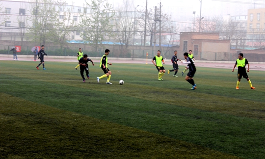 公共体育部主办的"河大杯"甲级联赛小组赛在金明校区志义体育场举行。本场小组赛我院对阵计算机与信息工程学院,并以1:0优势首战告捷。