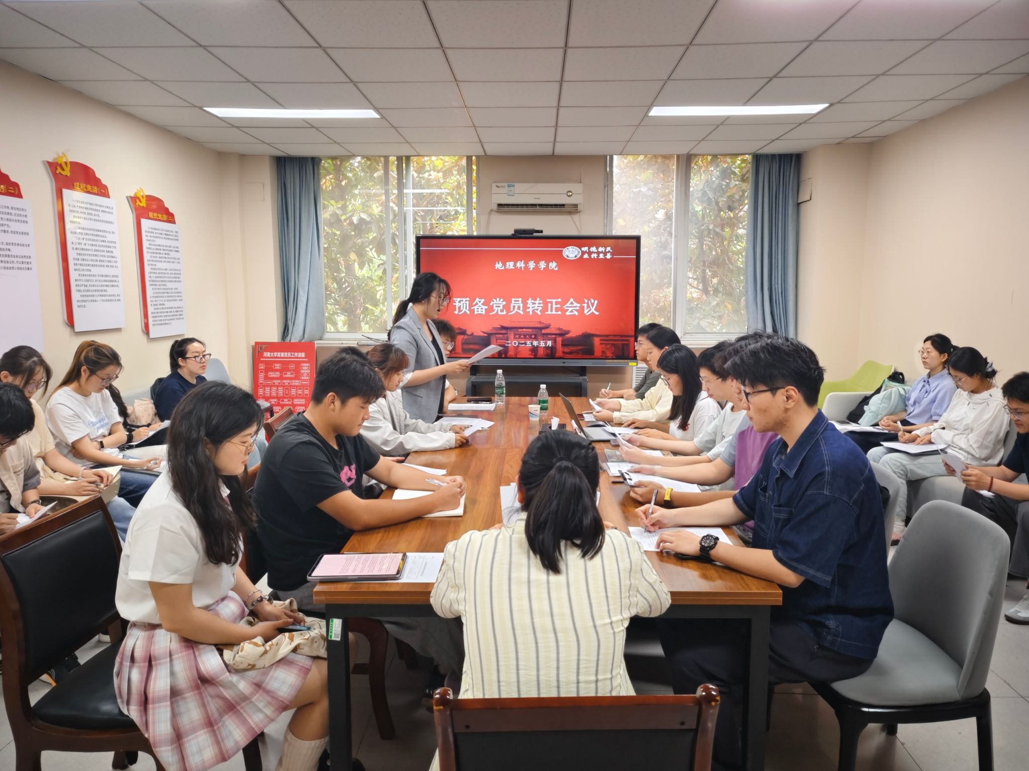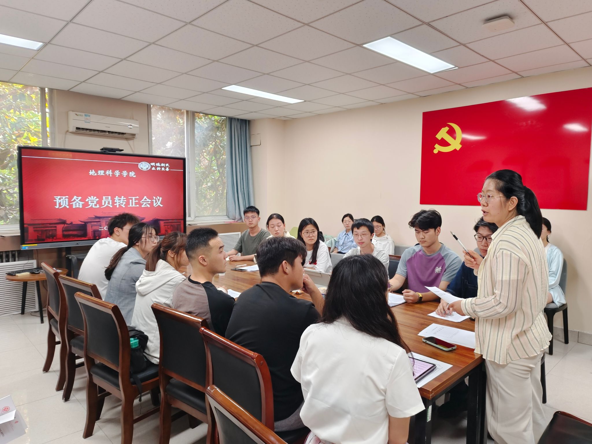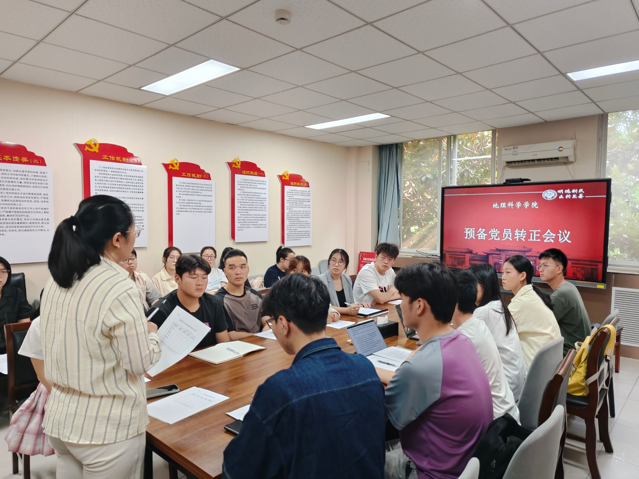 本科生第二党支部于地学楼二楼党支部书记活动召开预备党员转正大会暨发展对象民主评议会。本科生第二党支部全体预备党员、发展对象参加会议。会议由本科生第二党支部组织委员马利群主持。