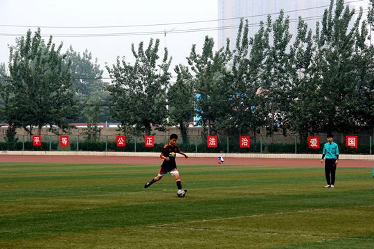 随着比赛哨声的吹响,双方开始了激烈的角逐。比赛开始不久,我院队长杜卿一个刁钻的角球造成守门员脱手,球从对方球员身上弹入球门,为我院赢得首球。上半场比赛中,我院凭借严谨的防守未能让对方攻破球门。下半场比赛最后几分钟,由于我院防守一时疏忽,对方射球成功获得一分。为决出胜负,我院与医学院进行点球大战,场面异常激烈扣人心弦,医学院点球成功,我院与冠军失之交臂。