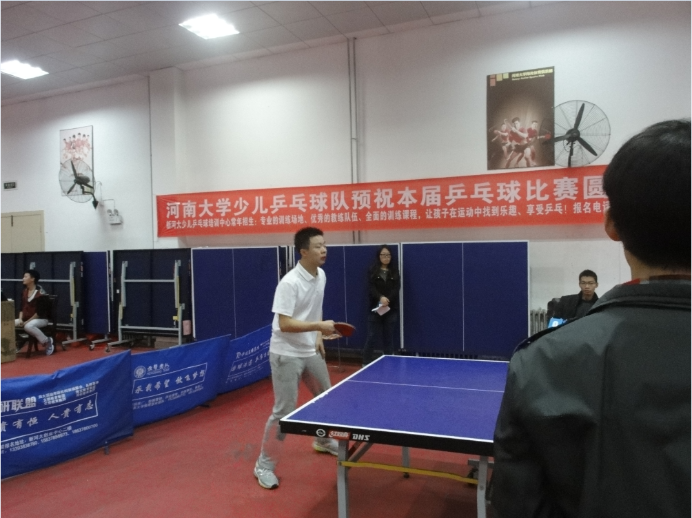 团体赛分为三个阶段进行,小组赛决出的8强院系男、女组于半决赛中决出4强,并在总决赛中按积分高低决出团体赛三强战队。环境与规划学院乒乓球队由熊小波领队,男队队员有:熊小波、康江江、宁立新、段宜洛、刘国洋。女队队员有:冯昶、王飞、蒋万莲、王洁、郭珍珍。他们团结友爱,播撒汗水,经过一番激烈而又精彩的比赛之后,层层角逐,最终以小组第一的好成绩进入决赛,在决赛中斩获男子组第三名,女子组第四名的优异成绩。