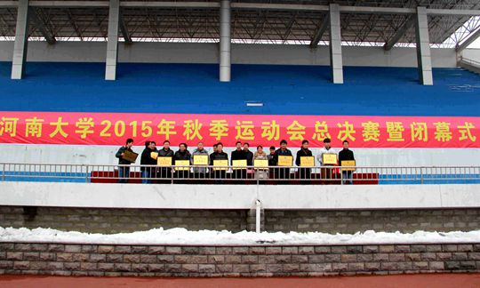 11月29日下午,我校2015年秋季运动会总决赛暨闭幕式在金明校区志义体育场举行。副校长、校体委主任刘志军及相关职能部门负责人出席仪式。闭幕式由校党政办公室主任、校体委副主任孙功奇主持。