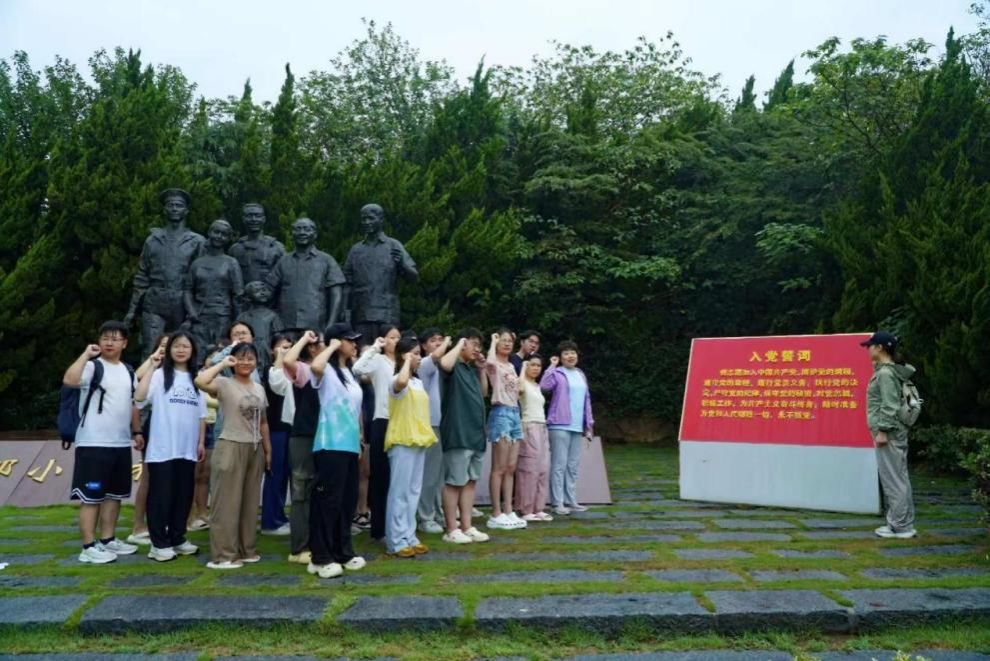 地理科学与工程学部全面推进“系所一体化”改革、深化“3+6+X”学科育人体系的关键阶段,6月29日,连云港实习队地理科学(公费师范)专业41名学生在学部韩艳、梁国付、鞠磊、李新鸽4位专业老师以及郑州师范学院赵天旭老师的带领下于连岛邓小平雕塑前开展七一主题党日活动。此次活动将思想政治教育与地理专业实践深度融合,是学部践行改革双轮驱动理念的生动缩影,更是STEP框架下培养“学高为师,身正为范”卓越师范人才的重要实践。