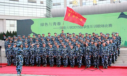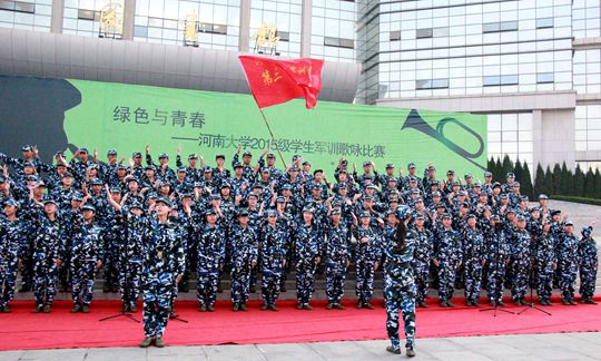 9月16日上午,以绿色与青春;为主题的2015级新生军训歌咏比赛在金明校区明德广场隆重举行。本院新生演唱了《小说狂人