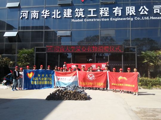 10月10日上午,由我院和哲学与公共管理学院青年志愿者协会共同举办的军训服募捐活动交接仪式在华北建筑有限公司圆满举行。其中,我院青年志愿者代表刘亲亲、王超等出席了此次仪式。
