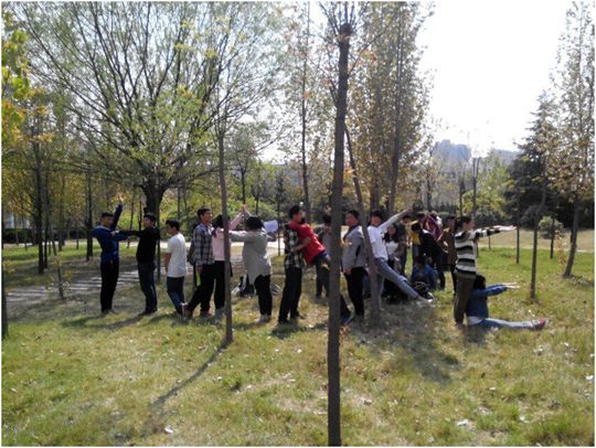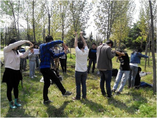 该专业班委本着“朋辈互助”的理念,以做游戏的形式让每位同学都能积极的参与到活动中来,别具一格、活泼有趣。生活委员王维晴简要说明了此次活动的目的之后,班会正式开始。其中,游戏共分为两个环节:传纸游戏,是将班级成员分为4小组,各组之间相互竞争,组内共同合作,目的是让大家从活动中感受到合作共赢的理念;疯狂的设计,全班同学共分为两组,发挥集体智慧,将负责人事先准备好的英文字母用造型摆出,并拍照作为证据,过程中两组同学争先恐后,纷纷为集体“献计献策”,吸引了不少同学驻足观看,有些甚至参与其中。最后,大家在草地上团坐一周,交流了此次活动的感受,很多同学纷纷表示收获满满。