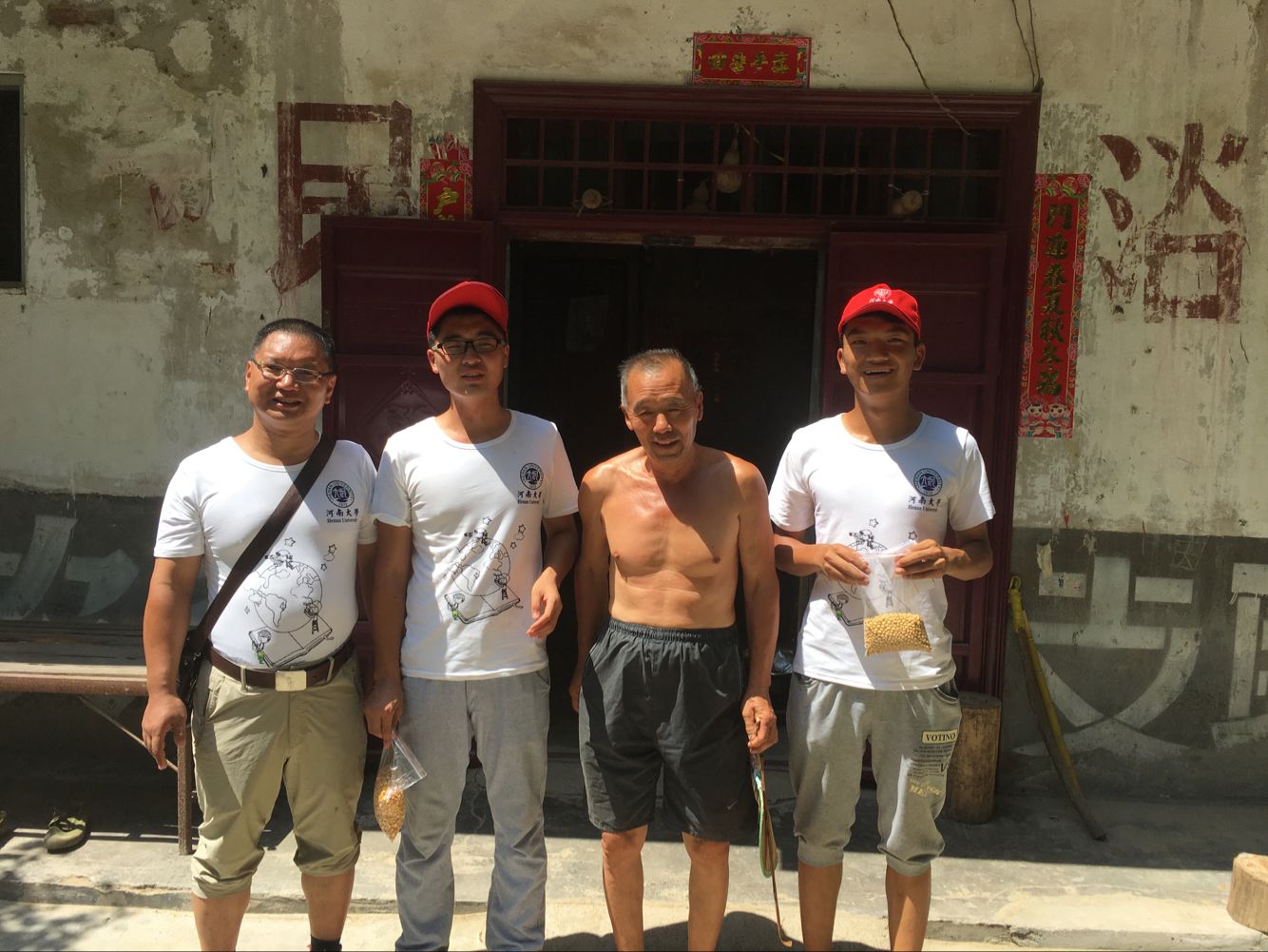 新乡组的成员赶至姚庄原阳县姚庄村的时候,已临近中午,七月的太阳毫不吝啬的炙烤着黄土大地。刚下车的队员们,一时间被热情的太阳晒得有点不适应,却不曾想王大叔这个时间还在忙碌。王叔还在收拾着自家的玉米,汗水在被晒得如红铜一样的脸上恣意的流着,直到队员上前搭讪,王叔才停下来,用挂在脖子上的毛巾擦了把汗。外表看似不言苟笑的王叔,笑起来也像被阳光渲染过一样,听了队员的自我介绍和表明来意之后,王叔笑着大手一指,对着刚打出来的玉米豪爽地说:“随便装!”