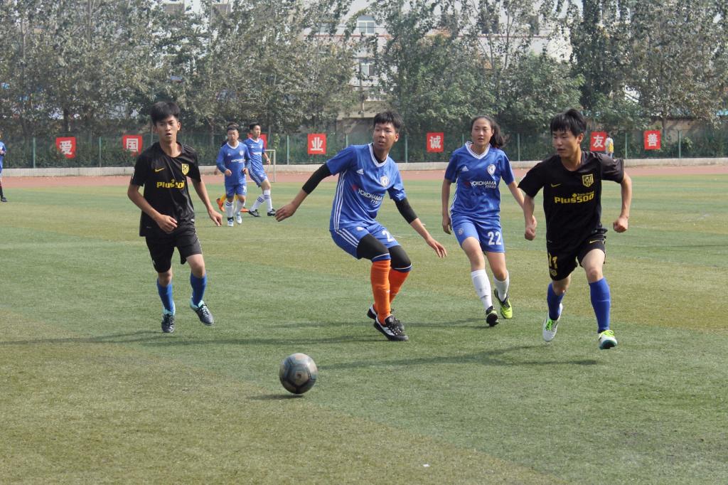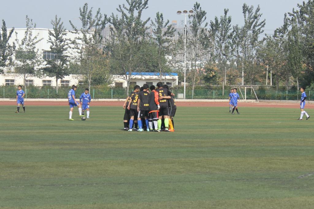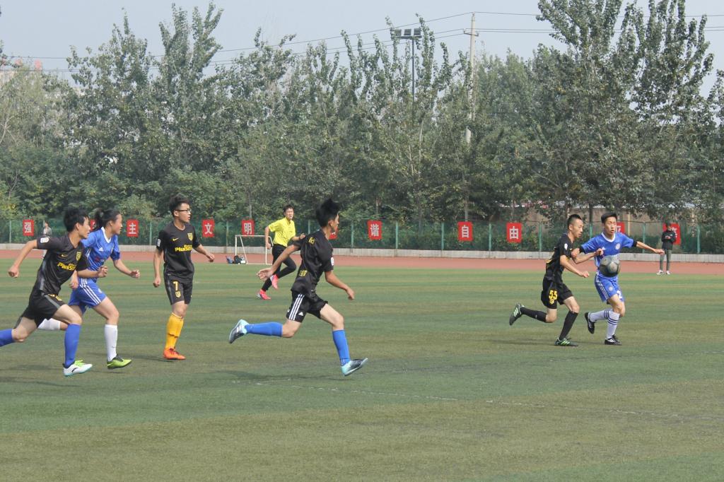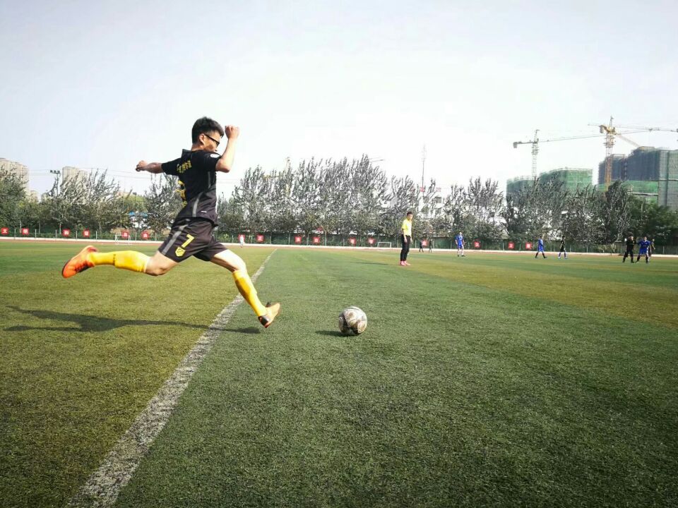 随着裁判的一声哨响,吹响了上半场比赛进攻的号角。对手先展开了猛烈的进攻,但均被我方防守球员拦截抢断,双方在中场的对抗中,我院足球队技高一筹,渐渐将球权掌握在手中。通过几次强有力的长传冲吊、直塞进攻,对手的后防线逐渐被撕开,我院球员愈战愈勇。终于在比赛进行到30分钟时,我院前锋凭借速度优势,抢点接到左路队友的直塞球后在左路一路狂奔,在底线附近拔脚怒射,对方守门员毫无招架之力,眼睁睁看着球直入球门内,我院前锋完成了一次漂亮的小角度打门,比分1:0,我院暂时领先!随后双方教练均开始执行换人战术,场上气氛逐渐被调动起来,我院队员接连创造出精彩的传射配合,将球牢牢地控制在对方半场。对方球员也不甘示弱,利用一次角球将球传入我方禁区,在多次激烈地拼抢后,我方球员果断大脚解围化解险情。最终我院将1:0的优势保持到比赛结束,斩获首胜。
