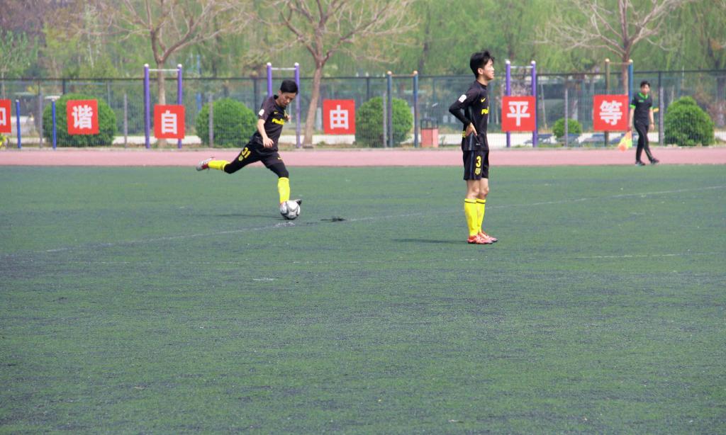 下半场双方易边再战,我方依旧攻势猛烈。在一次角球进攻,对方后卫在门前用手挡出我方队员头球,裁判随即叫停比赛,对其出示黄牌并给予我方点球,队长薛子成主罚命中,我院1:0领先。领先后我院越战越勇、乘胜追击,我院前锋覃胜聪在大禁区接到队友精准传球,转身摆脱射门,我院再入一球,比分变成2:0。场上的优势让我院球员更加斗志昂扬,我院再次将球打入对方禁区,对方门将扑球脱手,我院前锋李东锷抢点补射再下一城,3:0锁定胜局。