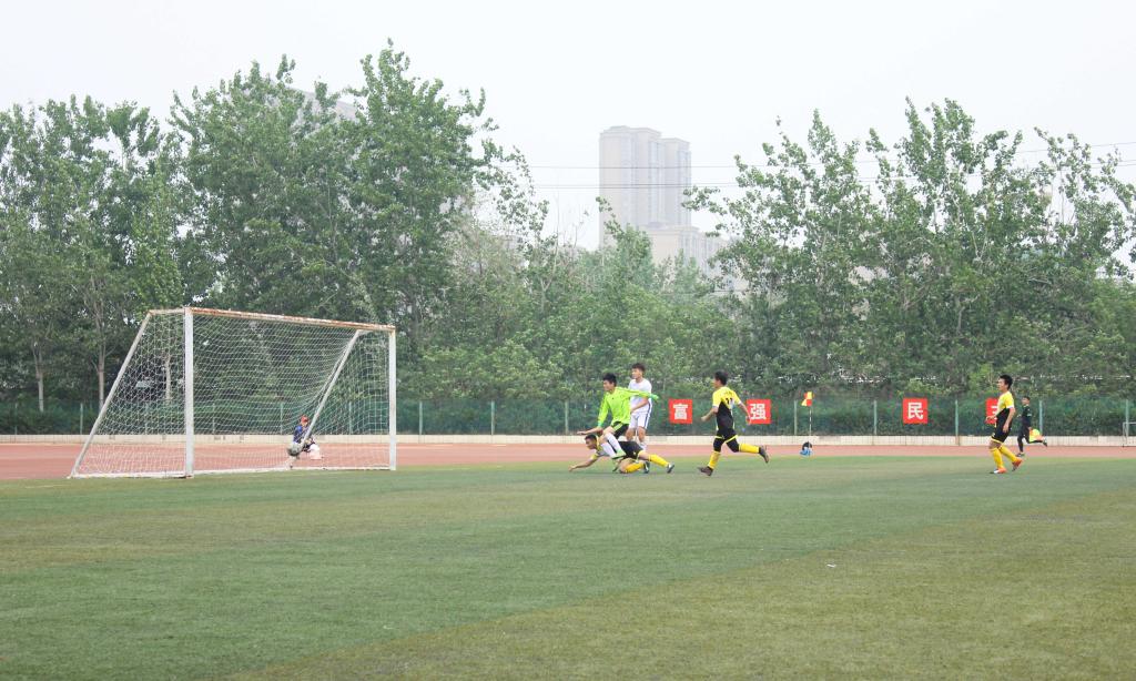 本次“河大杯”沿用小组赛与淘汰赛先后使用的混合赛制。我院在实力较强的D组中取得了2胜1负的战绩,以小组第二的身份出线。其中我院在第一场对阵新闻与传播学院的比赛中便初露锋芒,上下半场都给予了对手足够的压力,在下半场时更是一鼓作气连入三球,旗开得胜,以3:0取得开门红。在小组生死战中,我院对阵实力相近的欧亚国际学院,在被对手先进一球的情形下,我院调整节奏,冷静反击,在对手还沉浸在进球的喜悦中时连进两球,反超比分,此后我院一直保持良好的进攻节奏,之后双方各进一球,我院以3:2拿下关键比赛。此战胜利让我院成功晋级到淘汰赛阶段。