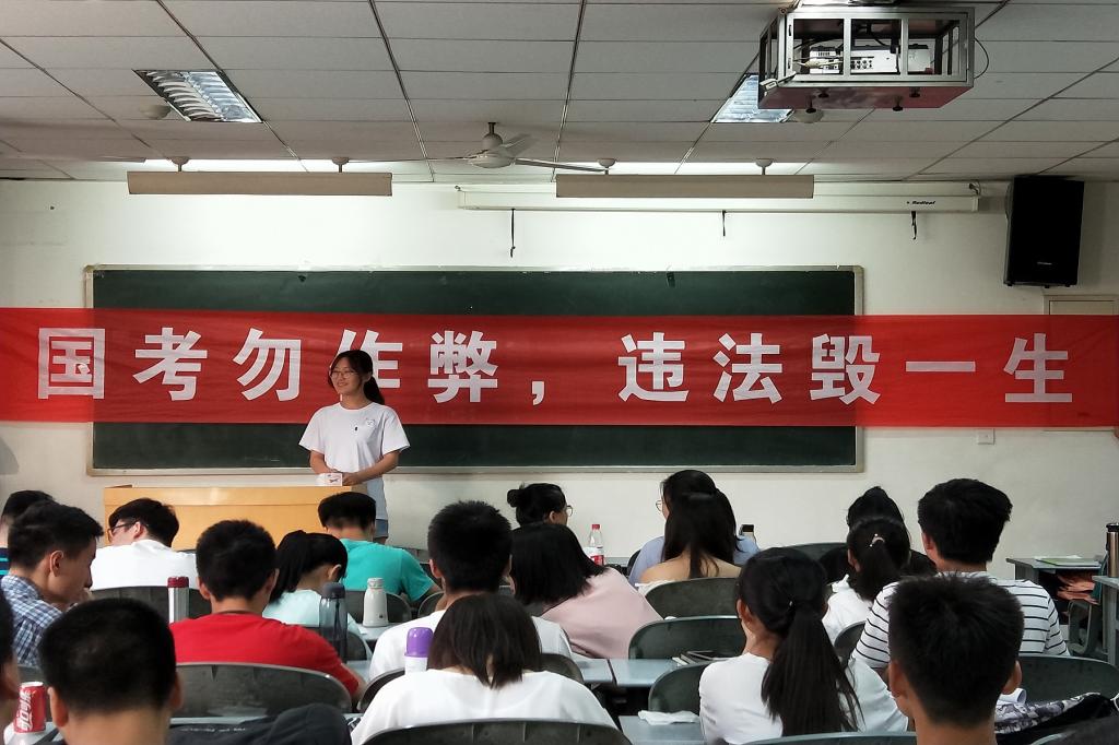 严抓高考替考现象的工作安排,我院2017级全体同学召开了以“国考勿作弊,违法毁一生”主题班会。会议对同学们进行了诚信思想教育,强调了高考替考的严重后果,告诫同学们一定要坚决杜绝高考替考现象。